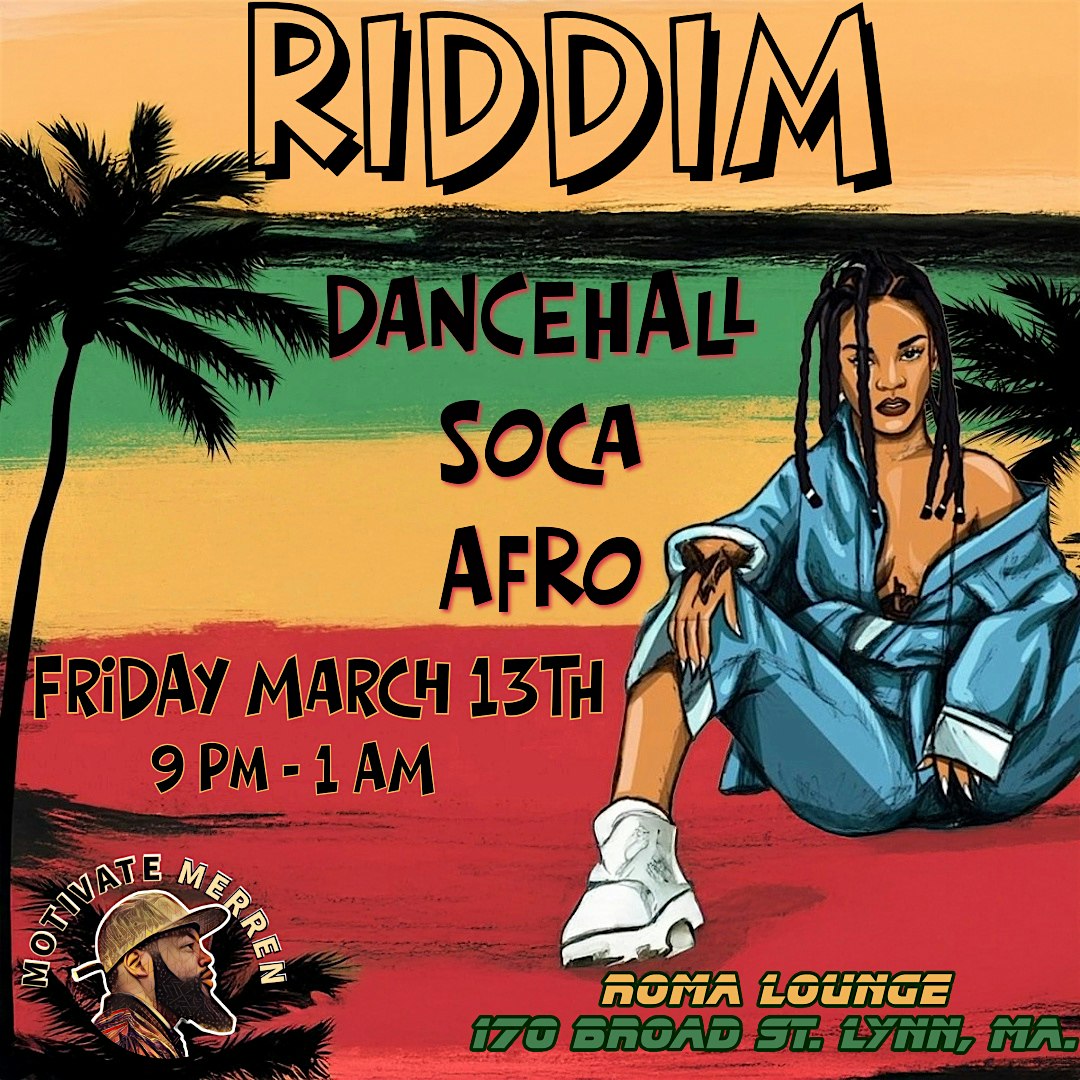by admin05Mar RIDDIM @ ROMA LOUNGE at ROMA LOUNGE – Lynn, MA RIDDIM @ ROMA LOUNGE at ROMA LOUNGE – Lynn, MA 2 2 people viewed this event. Get ready to vibe all night at RIDDIM. Strictly Dancehall • Soca • Afro! Tickets-RSVP Link Date And Time Friday, March 13th, 2026 09:00 PM (PST) Venue ROMA LOUNGE Location 170 Broad Street, Lynn, MA 1901 Event Types MusicParty or Social Gathering Event Category Massachusetts Share With Friends Facebook Twitter Linkedin Xing Pinterest Share This Post: