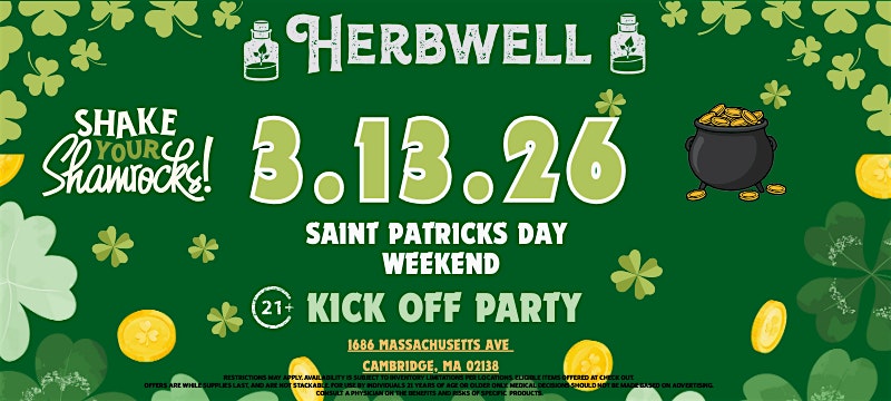 St. Paddy’s Day Weekend Kick off… The Herbwell Way! at Herbwell Cannabis, Massachusetts Avenue, Cambridge, MA, USA – Cambridge, MA