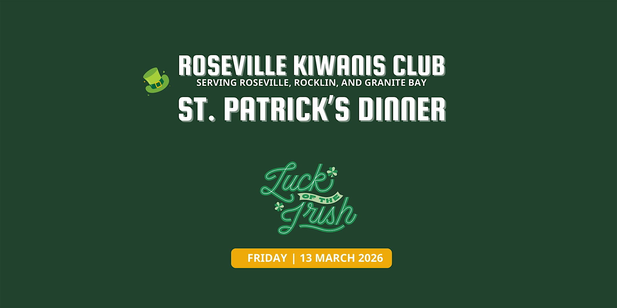 by admin23Feb St. Patrick’s Corned Beef Dinner at Rocklin Event Center – Rocklin, CA St. Patrick’s Corned Beef Dinner at Rocklin Event Center – Rocklin, CA 3 3 people viewed this event. St. Patrick’s Dinner, March 13 at the Rocklin Event Center. $30 includes dinner & a drink ticket. Seating is limited. Tickets-RSVP Link Date And Time Friday, March 13th, 2026 05:00 PM (PST) Venue Rocklin Event Center Location 2650 Sunset Boulevard, Rocklin, CA 95677 Event Types Food & Drink Event Category CaliforniaSacramento Share With Friends Facebook Twitter Linkedin Xing Pinterest Share This Post: