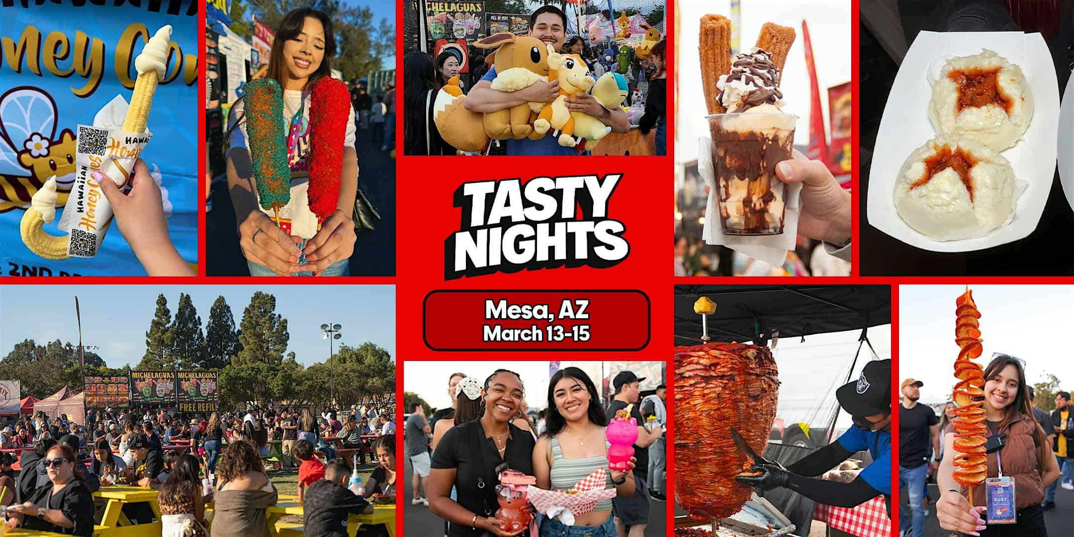 by admin14Feb Tasty Nights Street Food Festival (Mesa, AZ) — March 13–15 at Arizona Athletic Grounds – Mesa, AZ Tasty Nights Street Food Festival (Mesa, AZ) — March 13–15 at Arizona Athletic Grounds – Mesa, AZ 3 3 people viewed this event. Tasty Nights is a traveling national street food festival—curated vendors, desserts, drinks, music, and pop-up shopping! Tickets-RSVP Link Date And Time Friday, March 13th, 2026 09:00 PM (PST) Venue Arizona Athletic Grounds Location 6321 South Ellsworth Road, Mesa, AZ 85212 Event Types Festival or FairFood & Drink Event Category Arizona Share With Friends Facebook Twitter Linkedin Xing Pinterest Share This Post: