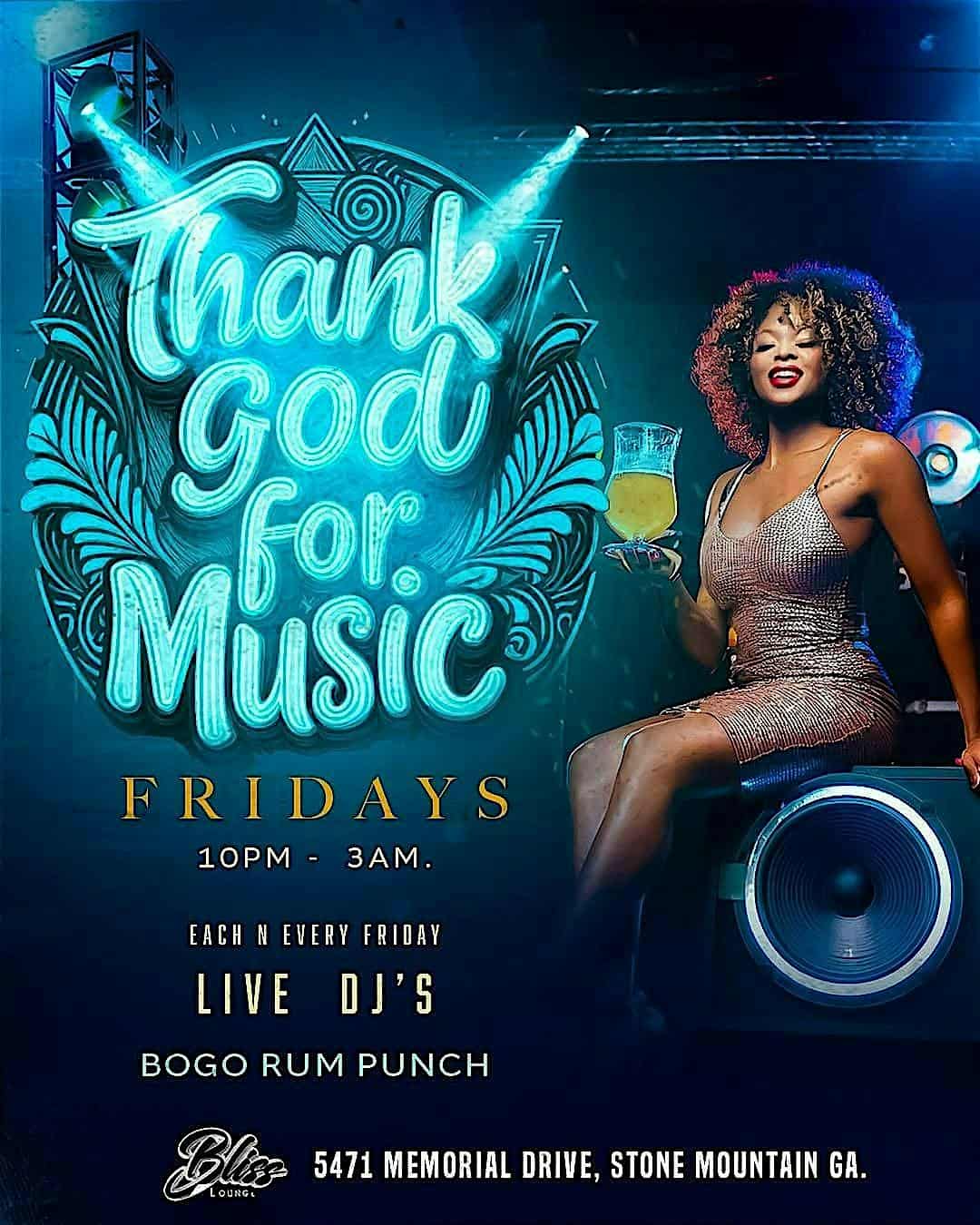 by admin05Mar Thank God For Music at Bliss Lounge – Stone Mountain, GA Thank God For Music at Bliss Lounge – Stone Mountain, GA 2 2 people viewed this event. Celebrate the power of music with us at “Thank God For Music” – a night filled ALL GENRES (HIP HOP, R&B, SOCA, AFROBEATS, AMPIANO, DANCEHALL Tickets-RSVP Link Date And Time Friday, March 13th, 2026 09:00 PM (PDT) Venue Bliss Lounge Location 5471 Memorial Drive, Stone Mountain, GA 30083 Event Types Food & DrinkParty or Social Gathering Event Category Georgia Share With Friends Facebook Twitter Linkedin Xing Pinterest Share This Post: