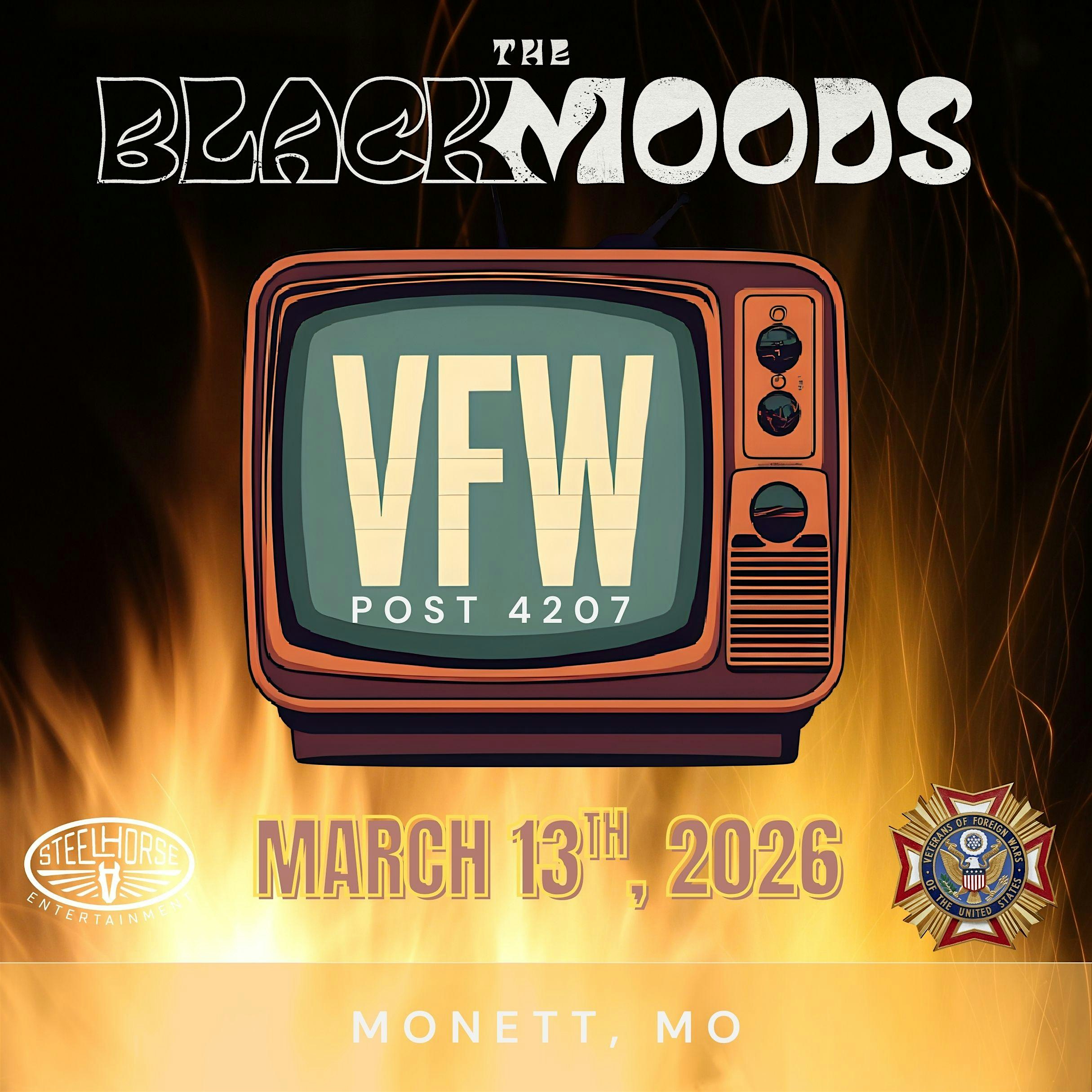 by admin23Feb The Black Moods at the VFW at VFW Post 4207 – Monett, MO The Black Moods at the VFW at VFW Post 4207 – Monett, MO 2 2 people viewed this event. Come join us for a rocking night with The Black Moods at the VFW on March 13th, 2026 Tickets-RSVP Link Date And Time Friday, March 13th, 2026 06:00 PM (PST) Venue VFW Post 4207 Location 5400 U.S. 60, Monett, MO 65708 Event Types Concert or PerformanceMusic Event Category Missouri Share With Friends Facebook Twitter Linkedin Xing Pinterest Share This Post: