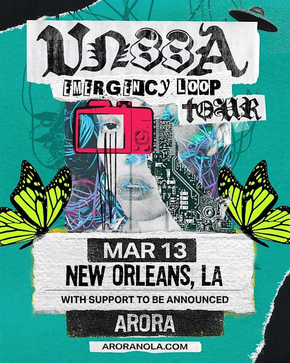 by admin23Feb VNSSA: Emergency Loop Tour at ARORA – New Orleans, LA VNSSA: Emergency Loop Tour at ARORA – New Orleans, LA 1 1 people viewed this event. VNSSA’s Emergency Loop Tour hits New Orleans by way of Arora on Friday 03.13.26 Tickets-RSVP Link Date And Time Friday, March 13th, 2026 10:00 PM (PST) Venue ARORA Location 828 S Peters Street Loft 2, New Orleans, LA 70130 Event Types Concert or PerformanceMusic Event Category LouisianaNew Orleans Share With Friends Facebook Twitter Linkedin Xing Pinterest Share This Post: