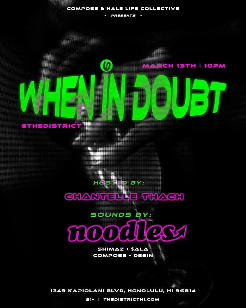 by admin05Mar When In Doubt at The District – Honolulu, HI When In Doubt at The District – Honolulu, HI 2 2 people viewed this event. When In Doubt is the instinct-driven party you don’t overthink. Tickets-RSVP Link Date And Time Friday, March 13th, 2026 10:00 PM (PDT) Venue The District Location 1349 Kapiolani Boulevard, Honolulu, HI 96814 Event Types MusicParty or Social Gathering Event Category HawaiiHonolulu Share With Friends Facebook Twitter Linkedin Xing Pinterest Share This Post: