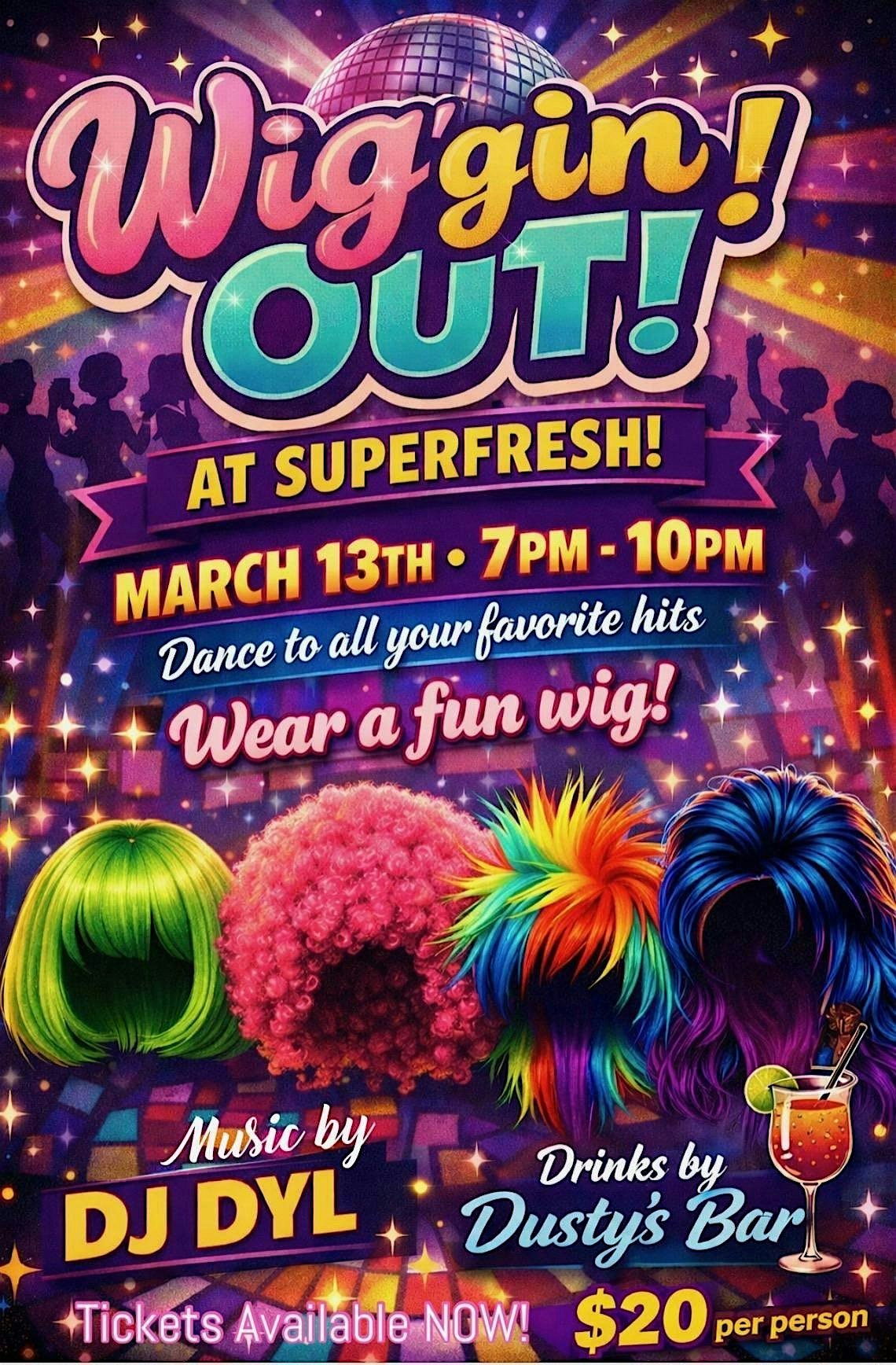 by admin27Feb WIG’GIN OUT! A SING-ALONG DANCE PARTY at SUPER FRESH – Austin, MN WIG’GIN OUT! A SING-ALONG DANCE PARTY at SUPER FRESH – Austin, MN 1 1 people viewed this event. Super Fresh is hosting another sing-along/dance party night! Wear your fave WIG, dress it up, and dance away! Tickets-RSVP Link Date And Time Friday, March 13th, 2026 @ 07:00 PM Location 2101 4th Street Northwest, Austin, MN 55912 Event Types MusicParty or Social Gathering Event Category Minnesota Share With Friends Facebook Twitter Linkedin Xing Pinterest Share This Post: