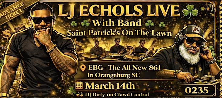 by admin23Feb ☘️ LJ ECHOLS LIVE ☘️ With Band at 861 Russell St – Orangeburg, SC ☘️ LJ ECHOLS LIVE ☘️ With Band at 861 Russell St – Orangeburg, SC 1 1 people viewed this event. Saint Patrick’s On The Lawn EBG – The All New 861 In Orangeburg SC March 14th DJ Dirty on Crowd Control Tickets-RSVP Link Date And Time Saturday, March 14th, 2026 07:00 PM (PST) Venue 861 Russell St Location 861 Russell Street, Orangeburg, SC 29115 Event Types Concert or PerformanceMusic Event Category South Carolina Share With Friends Facebook Twitter Linkedin Xing Pinterest Share This Post: