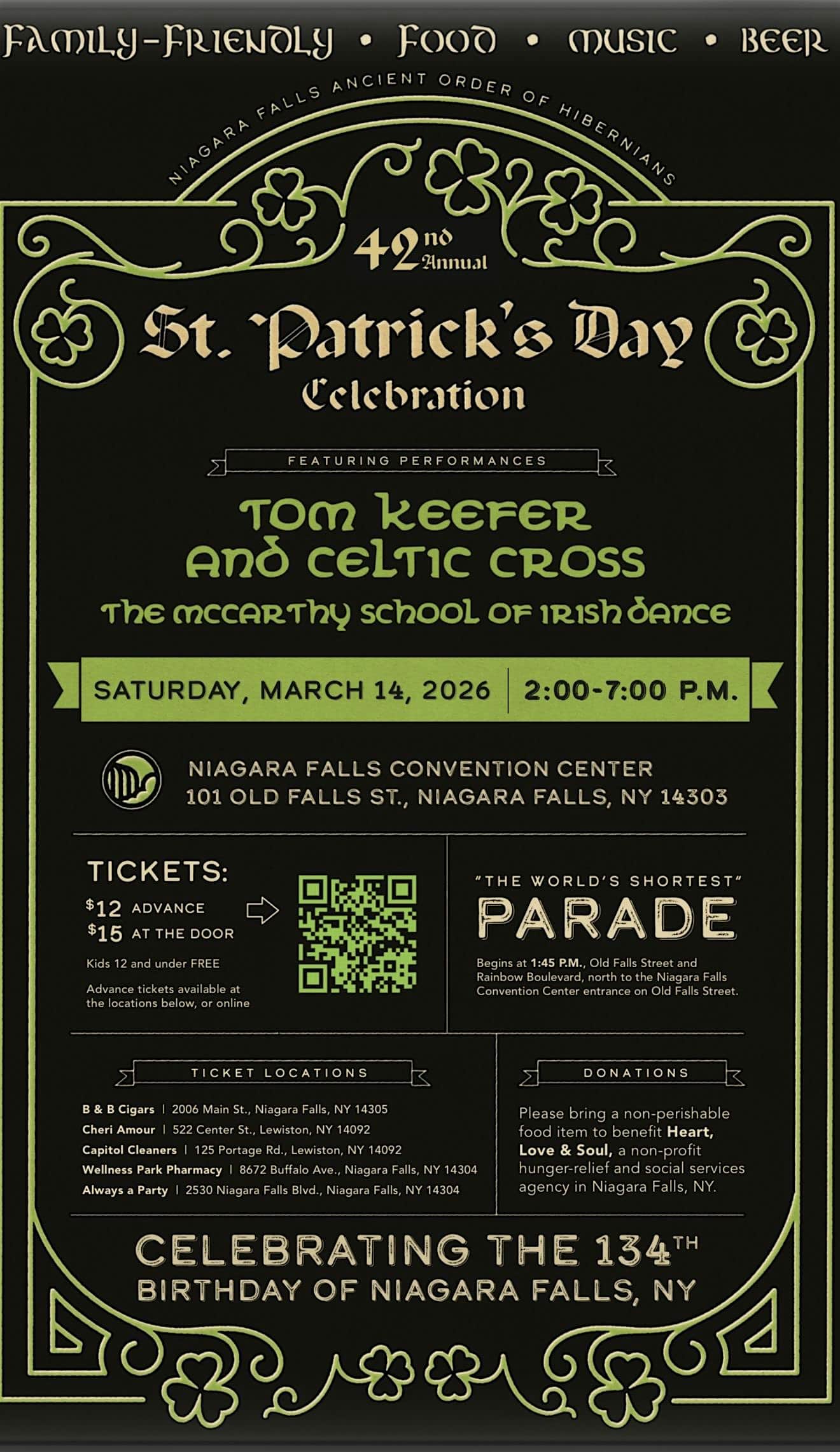 42nd Annual Niagara Falls AOH St. Patrick’s Day Party and Parade at Niagara Falls Convention Center (NFCC) – Niagara Falls, NY