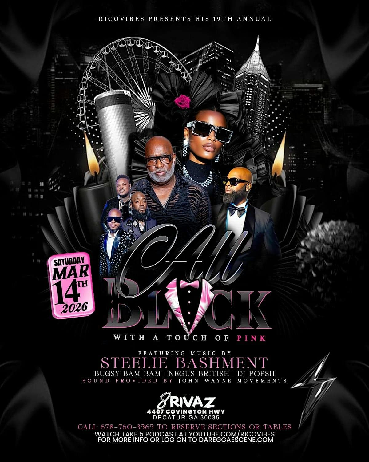 by admin23Feb ALL BLACK WITH A TOUCH OF PINK at 8Rivers Venue – Decatur, GA ALL BLACK WITH A TOUCH OF PINK at 8Rivers Venue – Decatur, GA 1 1 people viewed this event. Join us dressed in all black with pink accents for an evening of reggae and dancehall music at the sophisticated 8RIVERS venue. Tickets-RSVP Link Date And Time Saturday, March 14th, 2026 @ 10:00 PM Location 4407 Covington Highway, Decatur, GA 30035 Event Types Fashion & BeautyParty or Social Gathering Event Category Georgia Share With Friends Facebook Twitter Linkedin Xing Pinterest Share This Post: