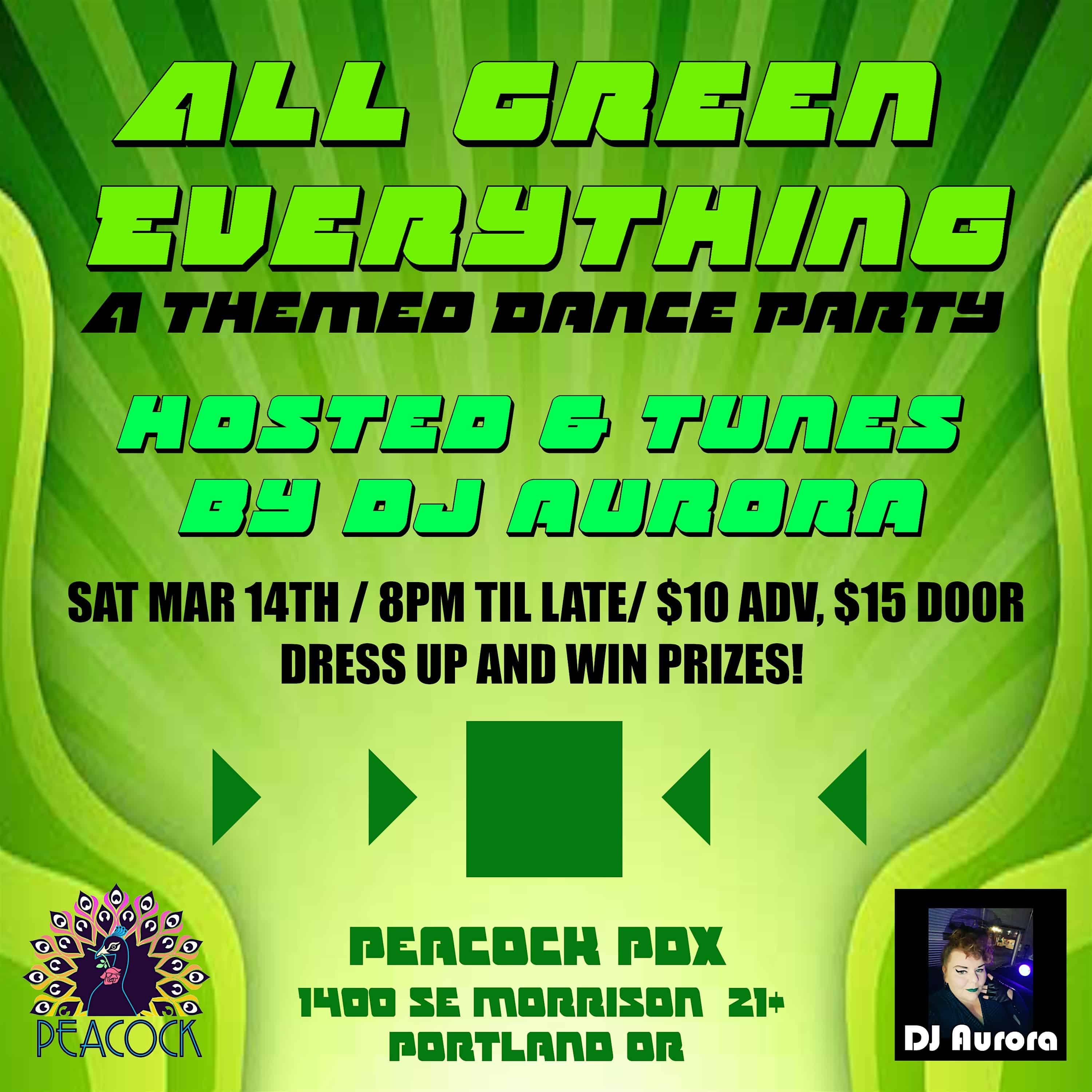 by admin23Feb ALL GREEN EVERYTHING: A Themed Dance Party at 1400 SE Morrison St – Portland, OR ALL GREEN EVERYTHING: A Themed Dance Party at 1400 SE Morrison St – Portland, OR 2 2 people viewed this event. Peacock PDX & DJ Aurora present: ALL GREEN EVERYTHING: A themed Dance Party! Tickets-RSVP Link Date And Time Saturday, March 14th, 2026 08:00 PM (PST) Venue 1400 SE Morrison St Location 1400 Southeast Morrison Street, Portland, OR 97214 Event Types Community & CultureParty or Social Gathering Event Category OregonPortland Share With Friends Facebook Twitter Linkedin Xing Pinterest Share This Post: