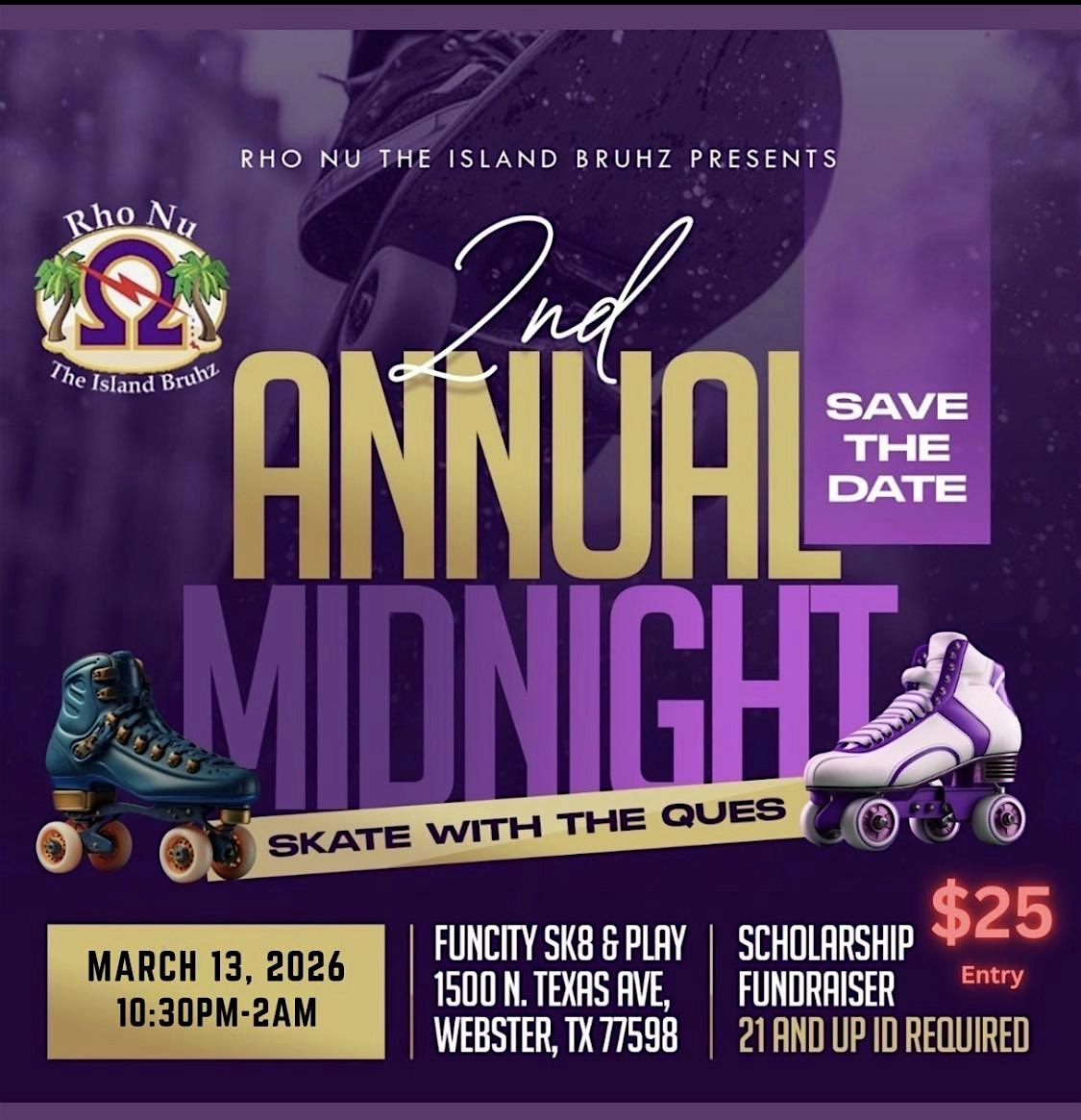 by admin13Feb Annual Midnight Skating With The Ques at FUNCITY SK8 & PLAY – Webster, TX Annual Midnight Skating With The Ques at FUNCITY SK8 & PLAY – Webster, TX 1 1 people viewed this event. Join us for the Annual Midnight Skating With The Ques—glide, vibe, and chill under the stars! Tickets-RSVP Link Date And Time Saturday, March 14th, 2026 03:00 AM (PST) Venue FUNCITY SK8 & PLAY Location 1500 North Texas Avenue, Webster, TX 77598 Event Types Community & CultureParty or Social Gathering Event Category Texas Share With Friends Facebook Twitter Linkedin Xing Pinterest Share This Post: