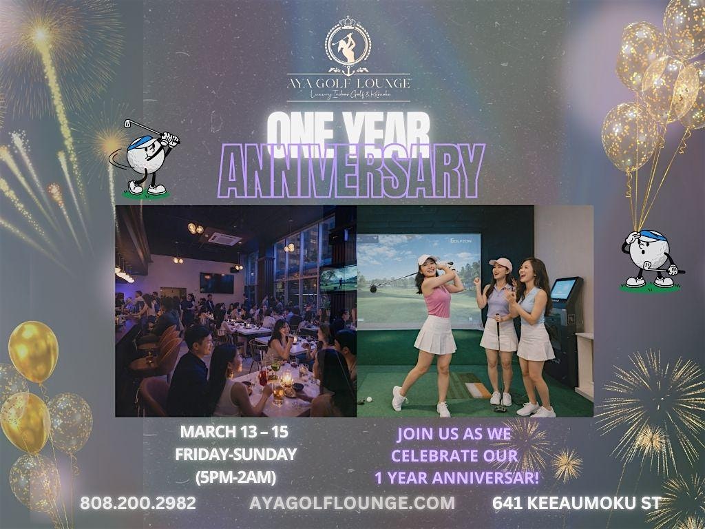 by admin27Feb Aya Golf Lounge 1-Year Anniversary! at 641 Ke’eaumoku St – Honolulu, HI Aya Golf Lounge 1-Year Anniversary! at 641 Ke’eaumoku St – Honolulu, HI 2 2 people viewed this event. Celebrate Aya Golf Lounge’s 1-Year Anniversary! Golf, cocktails, live vibes, giveaways & surprises all weekend. Join us and raise a glass! Tickets-RSVP Link Date And Time Saturday, March 14th, 2026 11:00 AM (PST) Venue 641 Ke’eaumoku St Location 641 Ke’eaumoku Street, Honolulu, HI 96814 Event Types Food & DrinkParty or Social Gathering Event Category HawaiiHonolulu Share With Friends Facebook Twitter Linkedin Xing Pinterest Share This Post: