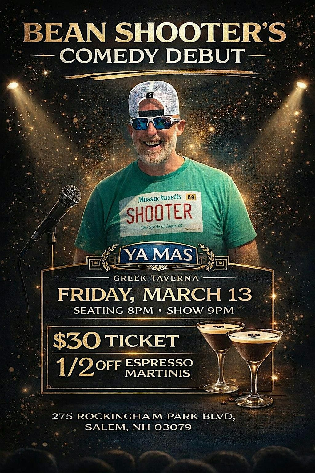 by admin14Feb Bean Shooters Comedy Debut at Ya Mas Greek Taverna & Bar – Salem, NH Bean Shooters Comedy Debut at Ya Mas Greek Taverna & Bar – Salem, NH 2 2 people viewed this event. Bean Shooters Comedy Debut launches with a killer lineup of raw, uncensored stand up – plus great food and 1/2 off espresso martinis! Tickets-RSVP Link Date And Time Saturday, March 14th, 2026 01:00 AM (PST) Venue Ya Mas Greek Taverna & Bar Location 275 Rockingham Park Boulevard, Salem, NH 3079 Event Types Concert or PerformancePerforming & Visual Arts Event Category New Hampshire Share With Friends Facebook Twitter Linkedin Xing Pinterest Share This Post:
