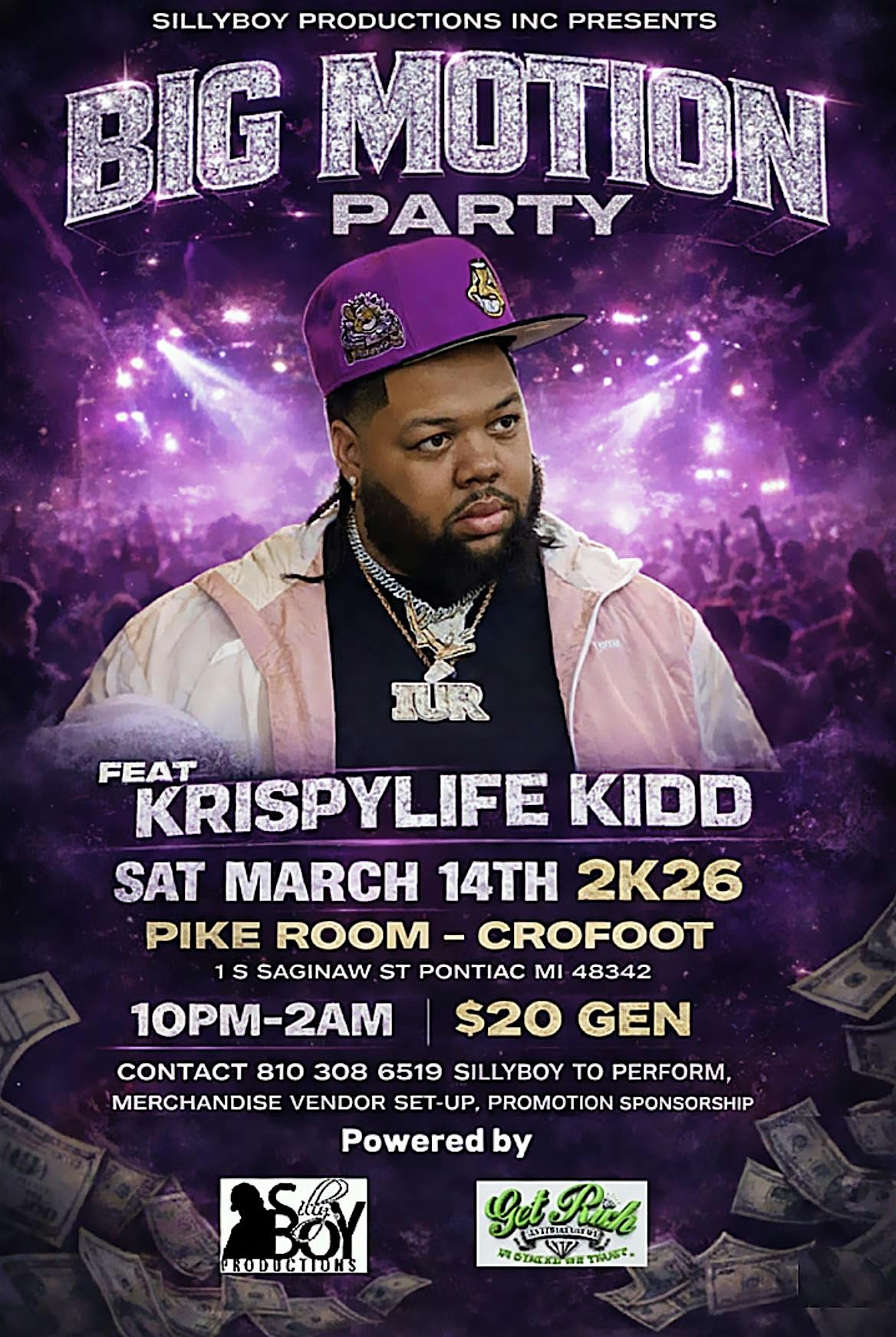 by admin05Mar BIG MOTION PARTY FEAT NATIONAL RECORDING ARTIST KRISPYLIFE KIDD at The Crofoot – Pontiac, MI BIG MOTION PARTY FEAT NATIONAL RECORDING ARTIST KRISPYLIFE KIDD at The Crofoot – Pontiac, MI 1 1 people viewed this event. When live entertainment and partying meets, 1 great night and it alls happen for 1 night only… Tickets-RSVP Link Date And Time Saturday, March 14th, 2026 10:00 PM (PST) Venue The Crofoot Location 1 South Saginaw Street, Pontiac, MI 48342 Event Types Concert or Performance Event Category Michigan Share With Friends Facebook Twitter Linkedin Xing Pinterest Share This Post: