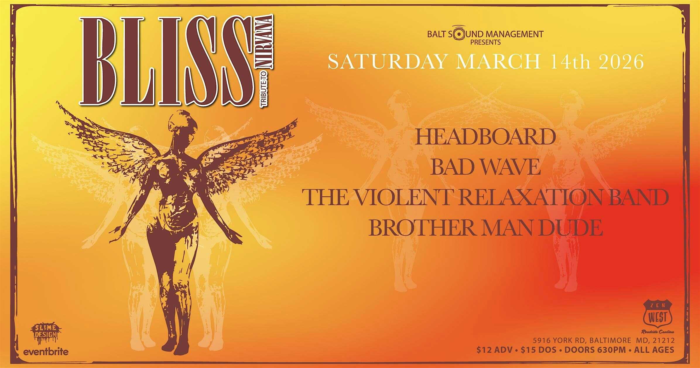 Bliss (Nirvana tribute) with Headboard, Bad Wave, TheViolentRelaxation,BMD at Zen West, York Road, Baltimore, MD, USA – Baltimore, MD