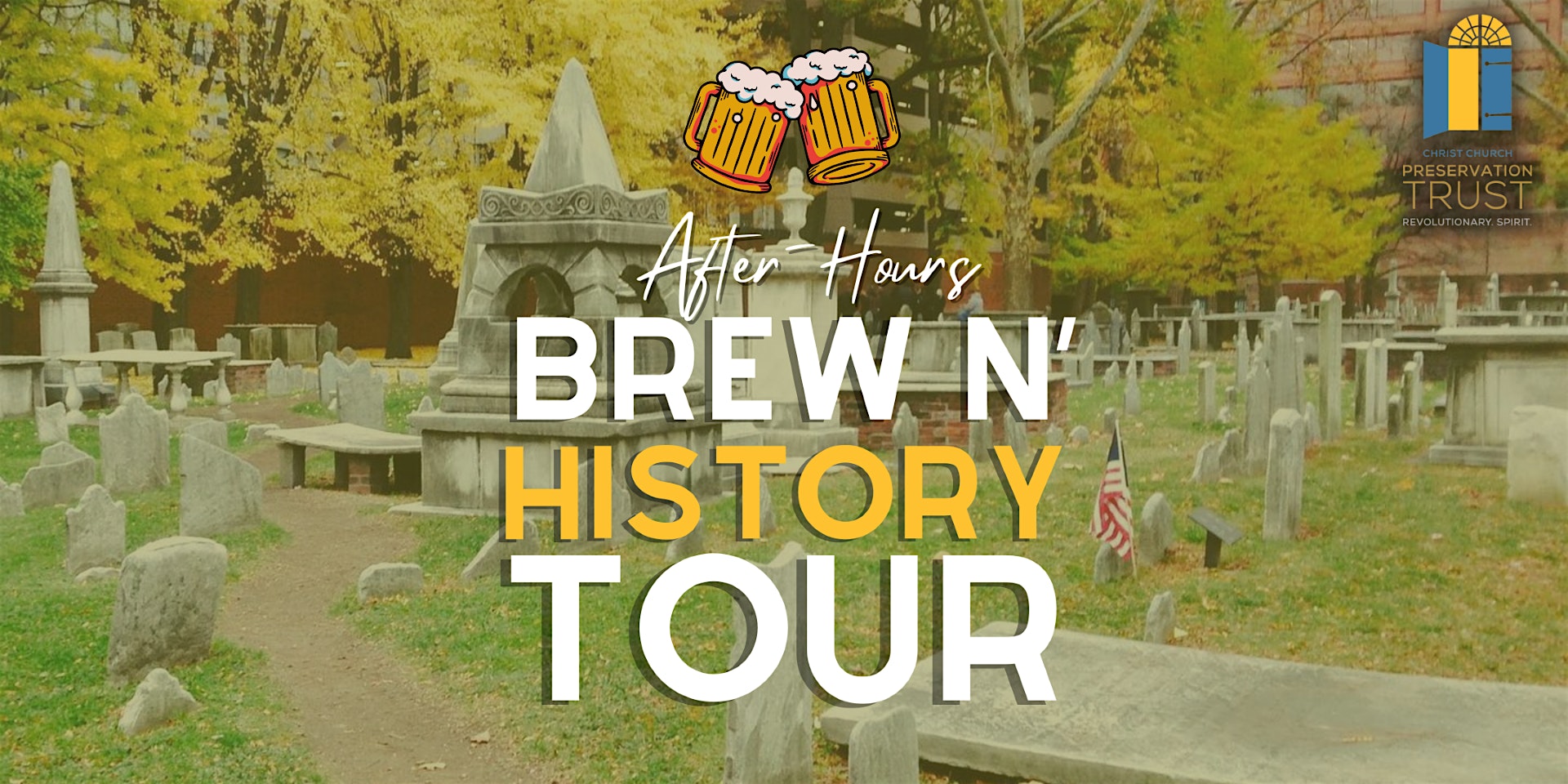 by admin27Feb Brew N’ History Tour at Christ Church Burial Ground – Philadelphia, PA Brew N’ History Tour at Christ Church Burial Ground – Philadelphia, PA 1 1 people viewed this event. Explore the graves of some icons while pairing their legacies with Yards Brewery. See how 18th-century drink culture fueled a new Republic. Tickets-RSVP Link Date And Time Saturday, March 14th, 2026 05:00 PM (PST) Venue Christ Church Burial Ground Location 340 North 5th Street, Philadelphia, PA 19106 Event Types Food & Drink Event Category PennsylvaniaPhiladelphia Share With Friends Facebook Twitter Linkedin Xing Pinterest Share This Post:
