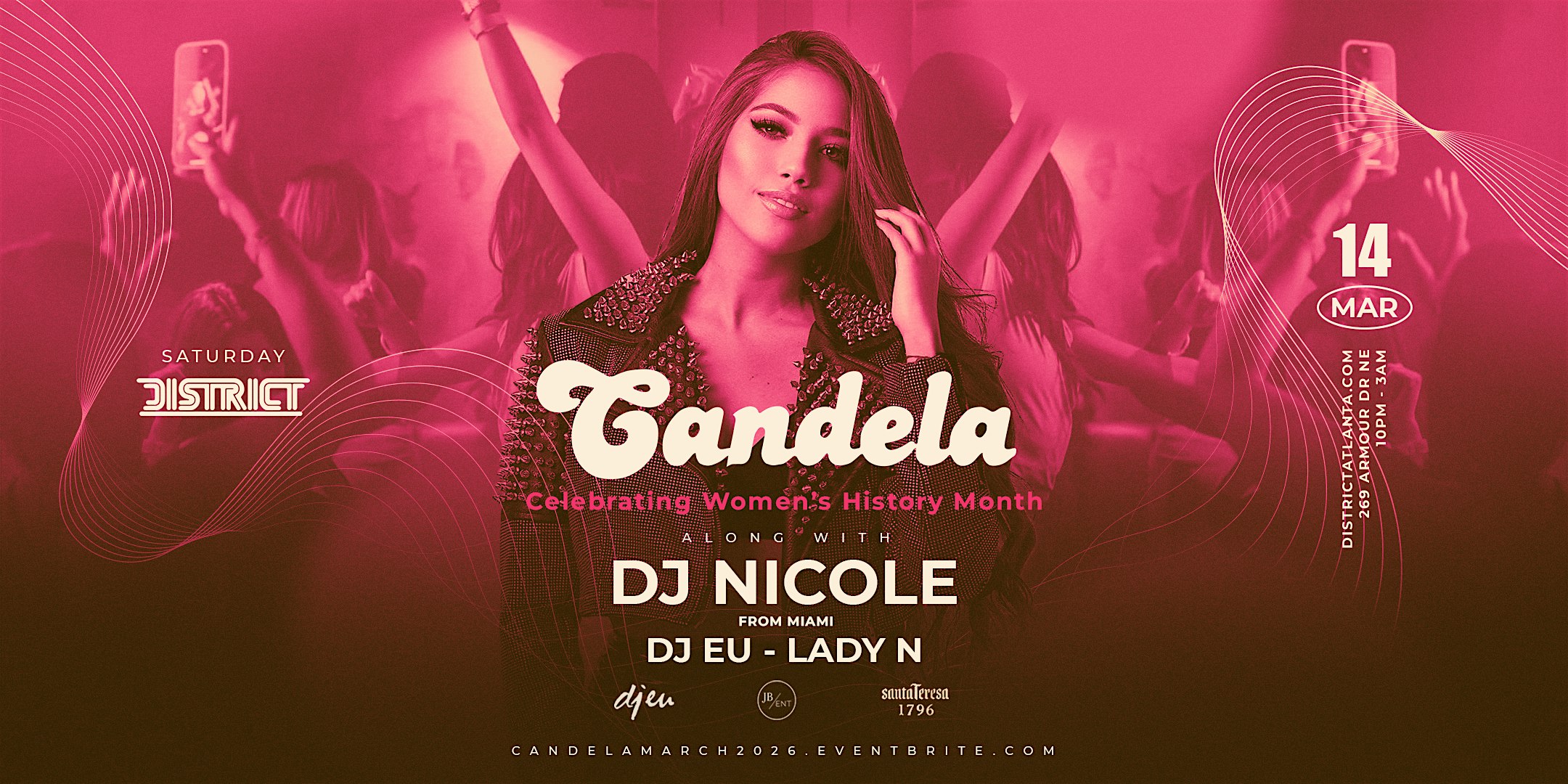 by admin27Feb Candela Feat. DJ Nicole (From Miami) + DJ EU + Lady N at District Atlanta – Atlanta, GA Candela Feat. DJ Nicole (From Miami) + DJ EU + Lady N at District Atlanta – Atlanta, GA 2 2 people viewed this event. Celebrating Women’s History Month Tickets-RSVP Link Date And Time Saturday, March 14th, 2026 10:00 PM (PST) Venue District Atlanta Location 269 Armour Drive Northeast, Atlanta, GA 30324 Event Types MusicParty or Social Gathering Event Category AtlantaGeorgia Share With Friends Facebook Twitter Linkedin Xing Pinterest Share This Post: