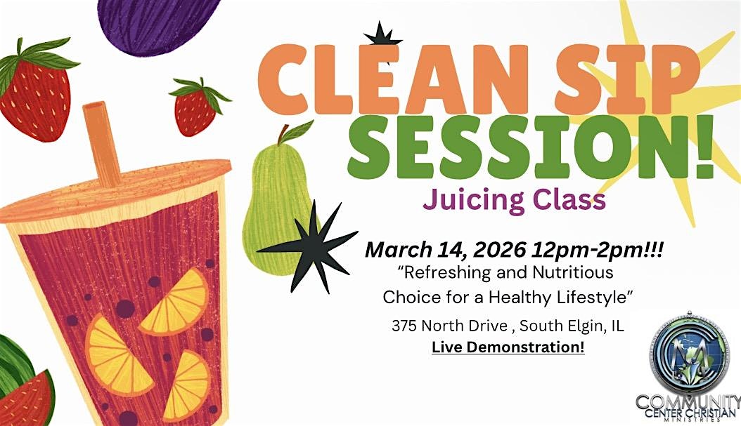by admin27Feb Clean Sip Juicing Class at 375 North Dr – South Elgin, IL Clean Sip Juicing Class at 375 North Dr – South Elgin, IL 1 1 people viewed this event. Join us for the Clean Sip Juicing Class and learn how to make refreshing, healthy juices in person! Tickets-RSVP Link Date And Time Saturday, March 14th, 2026 12:00 PM (PST) Venue 375 North Dr Location 375 North Drive, South Elgin, IL 60177 Event Types Food & Drink Event Category Illinois Share With Friends Facebook Twitter Linkedin Xing Pinterest Share This Post: