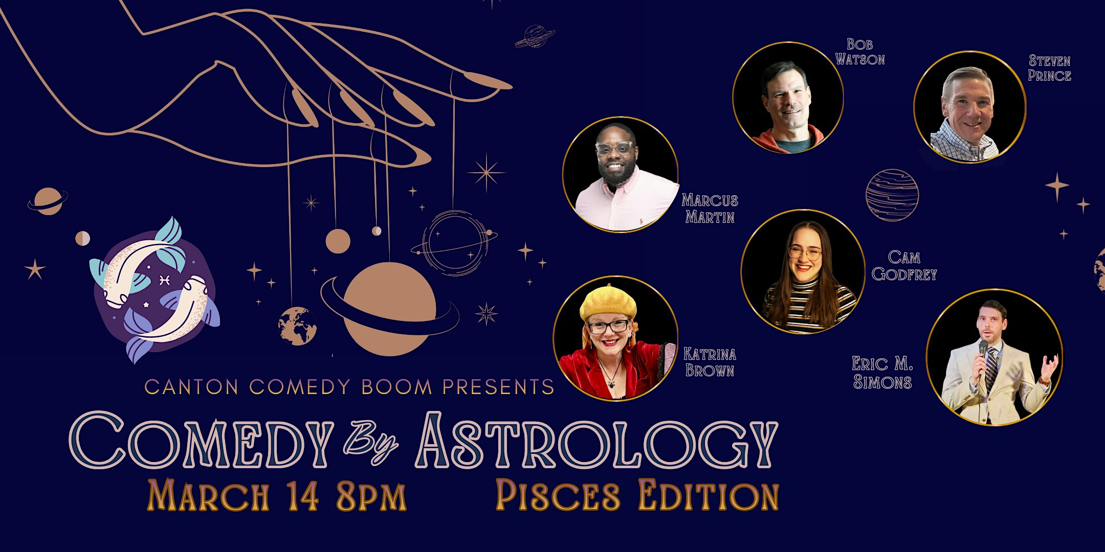 by admin05Mar Comedy by Astrology: Pisces Edition at Canton Comedy Boom – Canton, OH Comedy by Astrology: Pisces Edition at Canton Comedy Boom – Canton, OH 1 1 people viewed this event. Join us for a night of comedy with an all-Pisces line-up! Tickets-RSVP Link Date And Time Saturday, March 14th, 2026 08:00 PM (PST) Venue Canton Comedy Boom Location 324 Cleveland Avenue Northwest, Canton, OH 44702 Event Types Concert or PerformancePerforming & Visual Arts Event Category Ohio Share With Friends Facebook Twitter Linkedin Xing Pinterest Share This Post: