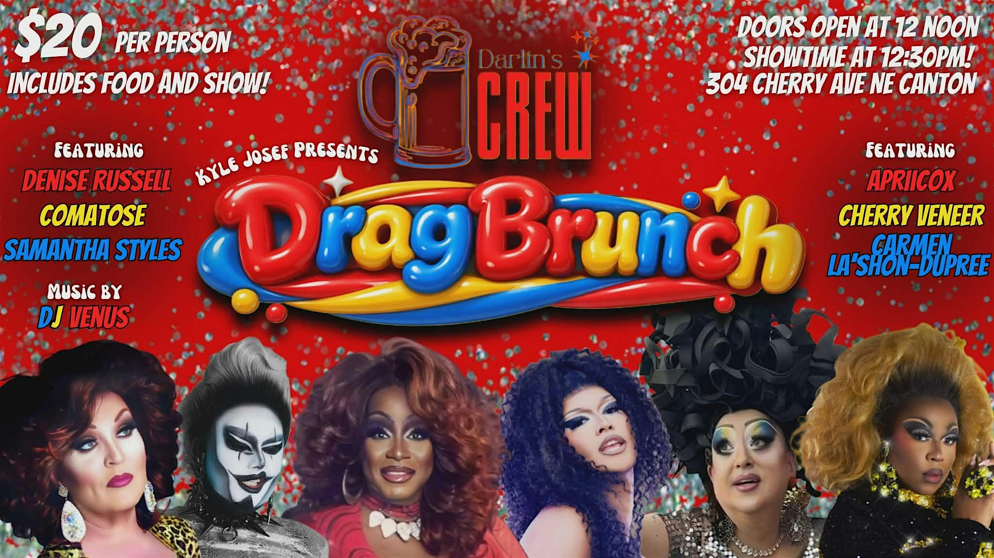 by admin13Feb Darlin’s CREW Drag Brunch at Darlin’s CREW – Canton, OH Darlin’s CREW Drag Brunch at Darlin’s CREW – Canton, OH 1 1 people viewed this event. Kyle Josef presents Darlin’s CREW inaugural Drag Brunch on Saturday, March 14th featuring live drag performances, brunch, cocktails & more! Tickets-RSVP Link Date And Time Saturday, March 14th, 2026 04:00 PM (PST) Venue Darlin’s CREW Location 304 Cherry Avenue Northeast, Canton, OH 44702 Event Types Food & DrinkParty or Social Gathering Event Category Ohio Share With Friends Facebook Twitter Linkedin Xing Pinterest Share This Post: