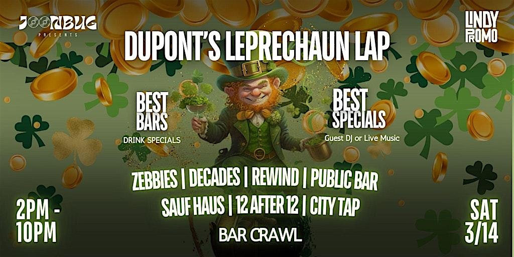 by admin13Feb DC St. Patrick’s Day Bar Crawl 3-14 at Zebbie’s Garden – Washington, DC DC St. Patrick’s Day Bar Crawl 3-14 at Zebbie’s Garden – Washington, DC 1 1 people viewed this event. DC Leprechaun Lap Bar Crawl – Bigger, Better, & Greener! Tickets-RSVP Link Date And Time Saturday, March 14th, 2026 06:00 PM (PST) Venue Zebbie's Garden Location 1223 Connecticut Avenue Northwest, Washington, DC 20036 Event Types Party or Social GatheringSeasonal & Holiday Event Category Washington DC Share With Friends Facebook Twitter Linkedin Xing Pinterest Share This Post: