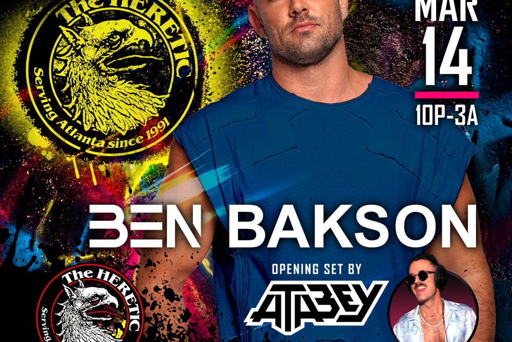 See DJ BEN BAKSON at Heretic Saturday March 14, 2026 Live in North Druid Hills on Saturday, March 14, 2026, Doors Open at 10:00 PM