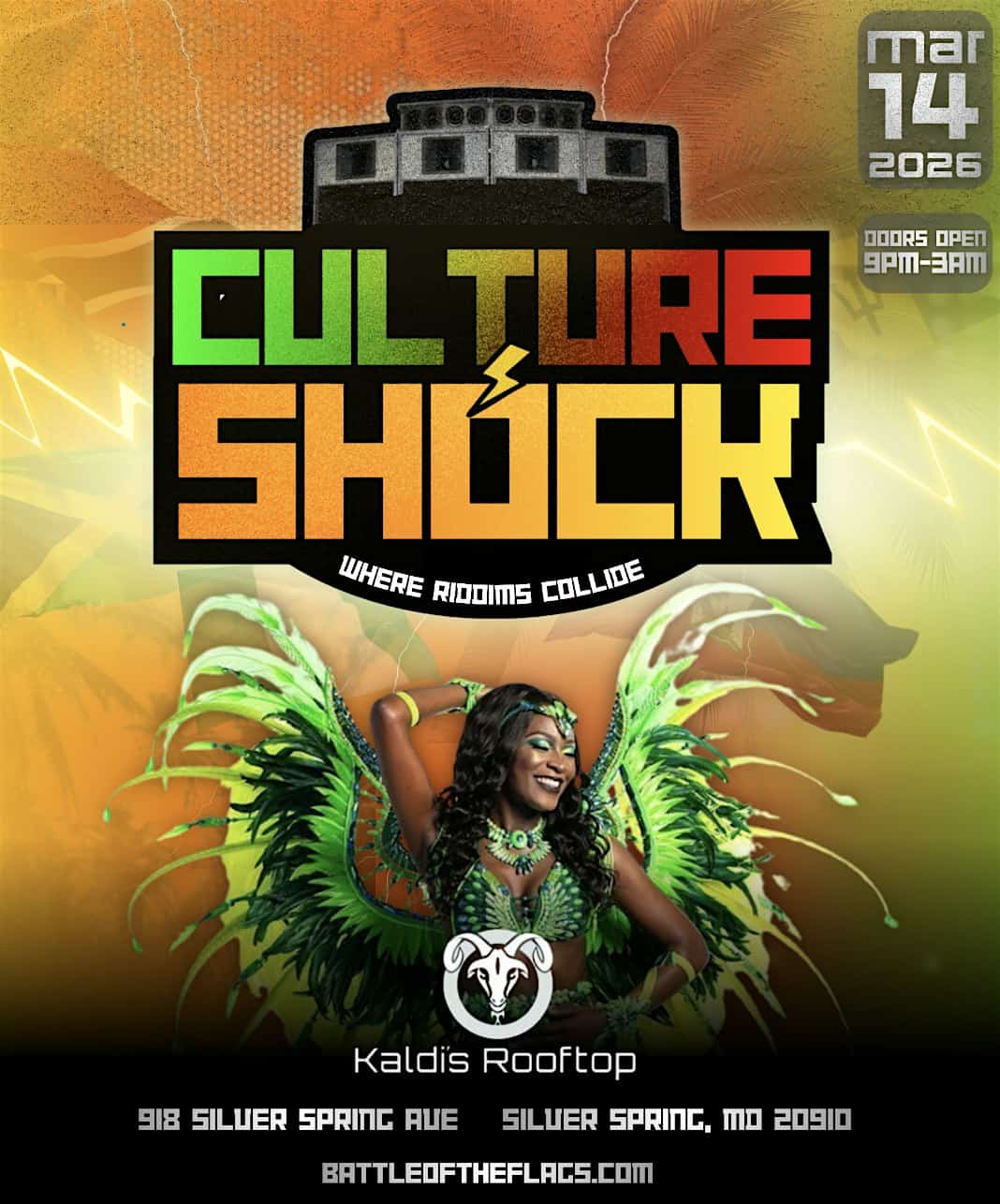 by admin23Feb DMV CULTURE SHOCK – ANNUAL CARIBBEAN SPRING KICKOFF EVENT at Kaldi’s Social House Silver Spring – Silver Spring, MD DMV CULTURE SHOCK – ANNUAL CARIBBEAN SPRING KICKOFF EVENT at Kaldi’s Social House Silver Spring – Silver Spring, MD 1 1 people viewed this event. On March 14TH – Join Us for an unforgettable night of Great Music, Drinks and Energy ⏰ Doors are open from 9PM-3AM Tickets-RSVP Link Date And Time Saturday, March 14th, 2026 09:00 PM (PST) Venue Kaldi’s Social House Silver Spring Location 918 Silver Spring Avenue, Silver Spring, MD 20910 Event Types Community & CultureParty or Social Gathering Event Category MarylandSilver Spring Share With Friends Facebook Twitter Linkedin Xing Pinterest Share This Post: