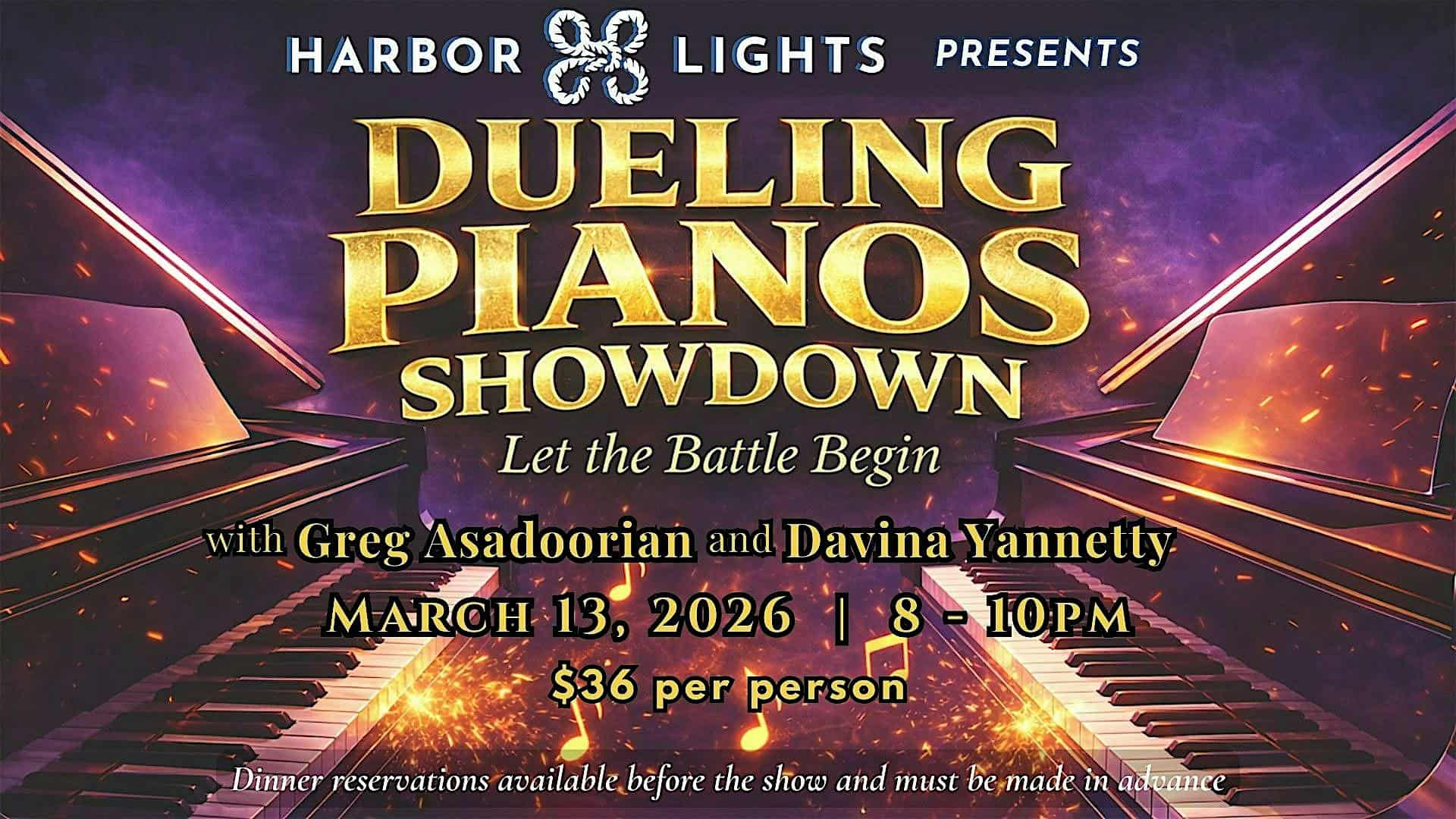 by admin14Feb Dueling Pianos Live at Harbor Lights Dining Events Golf Marina – Warwick, RI Dueling Pianos Live at Harbor Lights Dining Events Golf Marina – Warwick, RI 2 2 people viewed this event. Get ready for a high-energy, interactive night of music, fun, and nonstop sing-alongs featuring RI and Aruba favorite, Greg Asadoorian! Tickets-RSVP Link Date And Time Saturday, March 14th, 2026 12:00 AM (PST) Venue Harbor Lights Dining Events Golf Marina Location 150 Gray Street, Warwick, RI 2889 Event Types Concert or PerformancePerforming & Visual Arts Event Category ProvidenceRhode Island Share With Friends Facebook Twitter Linkedin Xing Pinterest Share This Post: