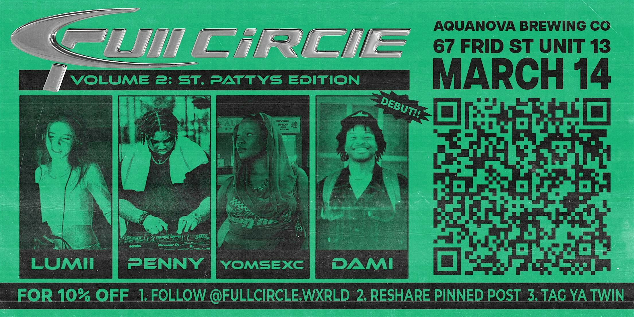 by admin27Feb FULL CIRCLE VOLUME 2: ST.PATTYS EDITION at Aquanova Brewing Company – Hamilton, Canada FULL CIRCLE VOLUME 2: ST.PATTYS EDITION at Aquanova Brewing Company – Hamilton, Canada 1 1 people viewed this event. Get ready for an IMMERSIVE EXPERIENCE AT FULL CIRCLE VOL.2: ST.PATTYS EDITION. Tickets-RSVP Link Date And Time Saturday, March 14th, 2026 @ 10:00 PM Location 67 Frid Street, Hamilton, Canada L8P 4M3 Event Types Party or Social GatheringSeasonal & Holiday Event Category Canada Share With Friends Facebook Twitter Linkedin Xing Pinterest Share This Post:
