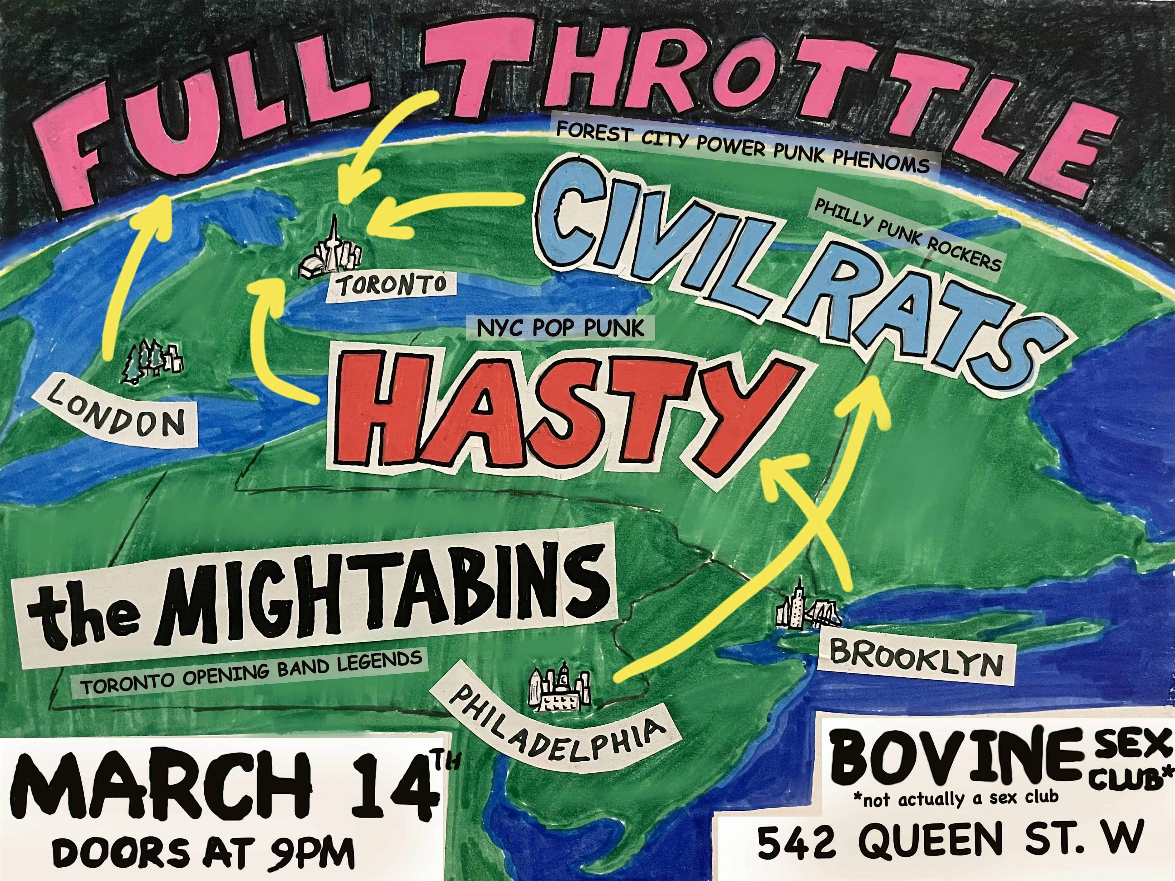 by admin23Feb Full Throttle, Civil Rats, Hasty, The Mightabins at Bovine Sex Club – Toronto, Canada Full Throttle, Civil Rats, Hasty, The Mightabins at Bovine Sex Club – Toronto, Canada 1 1 people viewed this event. March 14th @ Bovine Sex Club Tickets-RSVP Link Date And Time Saturday, March 14th, 2026 09:00 PM (PST) Venue Bovine Sex Club Location 542 Queen Street West, Toronto, Canada M5V 2B5 Event Types Music Event Category CanadaToronto Share With Friends Facebook Twitter Linkedin Xing Pinterest Share This Post: