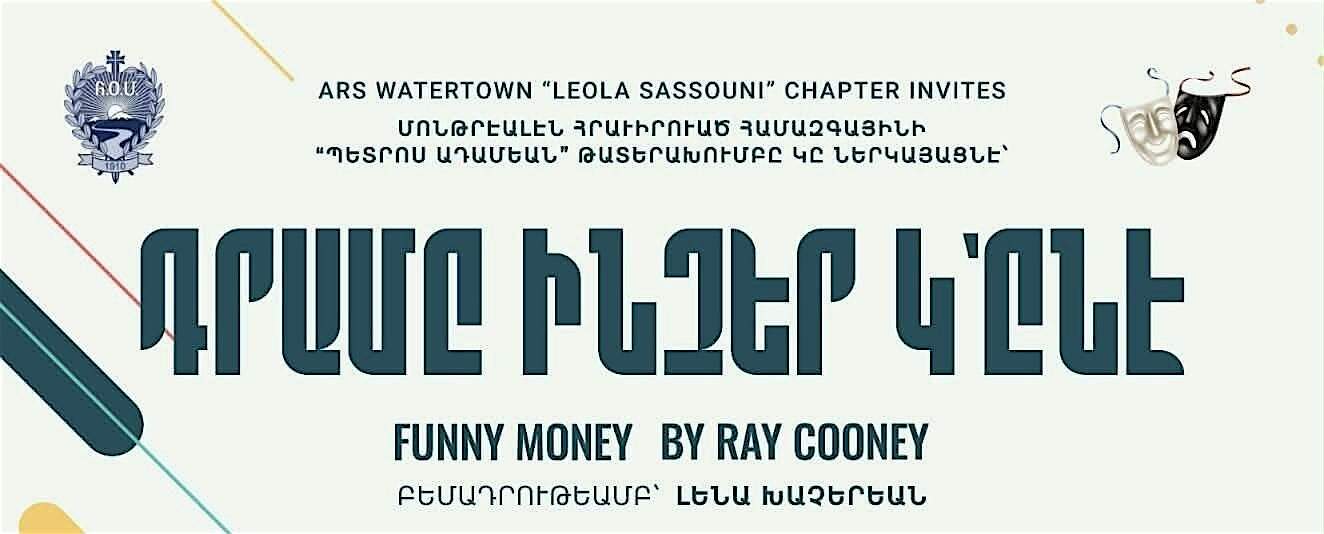 by admin14Feb Funny Money by Ray Cooney at Watertown Middle School – Watertown, MA Funny Money by Ray Cooney at Watertown Middle School – Watertown, MA 1 1 people viewed this event. ARS Watertown “Leola Sassouni” Chapter Invites you to Montreal Hamazkayin’s performance of Funny Money by Ray Cooney Tickets-RSVP Link Date And Time Saturday, March 14th, 2026 10:00 PM (PST) Venue Watertown Middle School Location 68 Waverley Avenue, Watertown, MA 2472 Event Types Concert or PerformancePerforming & Visual Arts Event Category Massachusetts Share With Friends Facebook Twitter Linkedin Xing Pinterest Share This Post:
