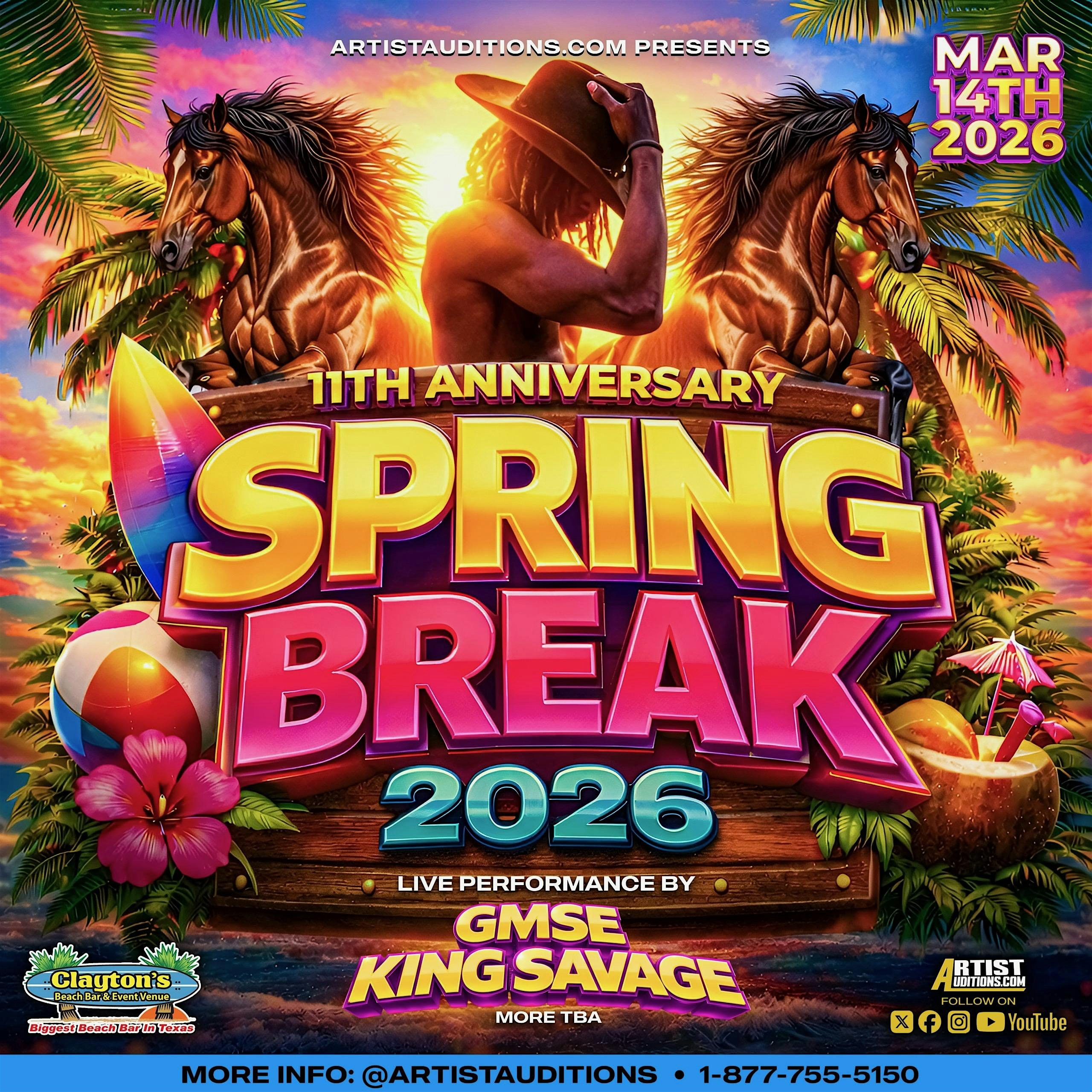 by admin22Feb GMSE KING SAVAGE [SPRING BREAK 2026] at Clayton’s Beach Bar & Event Venue – South Padre Island, TX GMSE KING SAVAGE [SPRING BREAK 2026] at Clayton’s Beach Bar & Event Venue – South Padre Island, TX 1 1 people viewed this event. Get ready to squad up IRL for GMSE KING SAVAGE — epic vibes and wild challenges await! Tickets-RSVP Link Date And Time Saturday, March 14th, 2026 @ 12:00 PM Location 6900 Padre Boulevard, South Padre Island, TX 78597 Event Types Concert or PerformanceMusicSpring Break Event Category Texas Share With Friends Facebook Twitter Linkedin Xing Pinterest Share This Post: