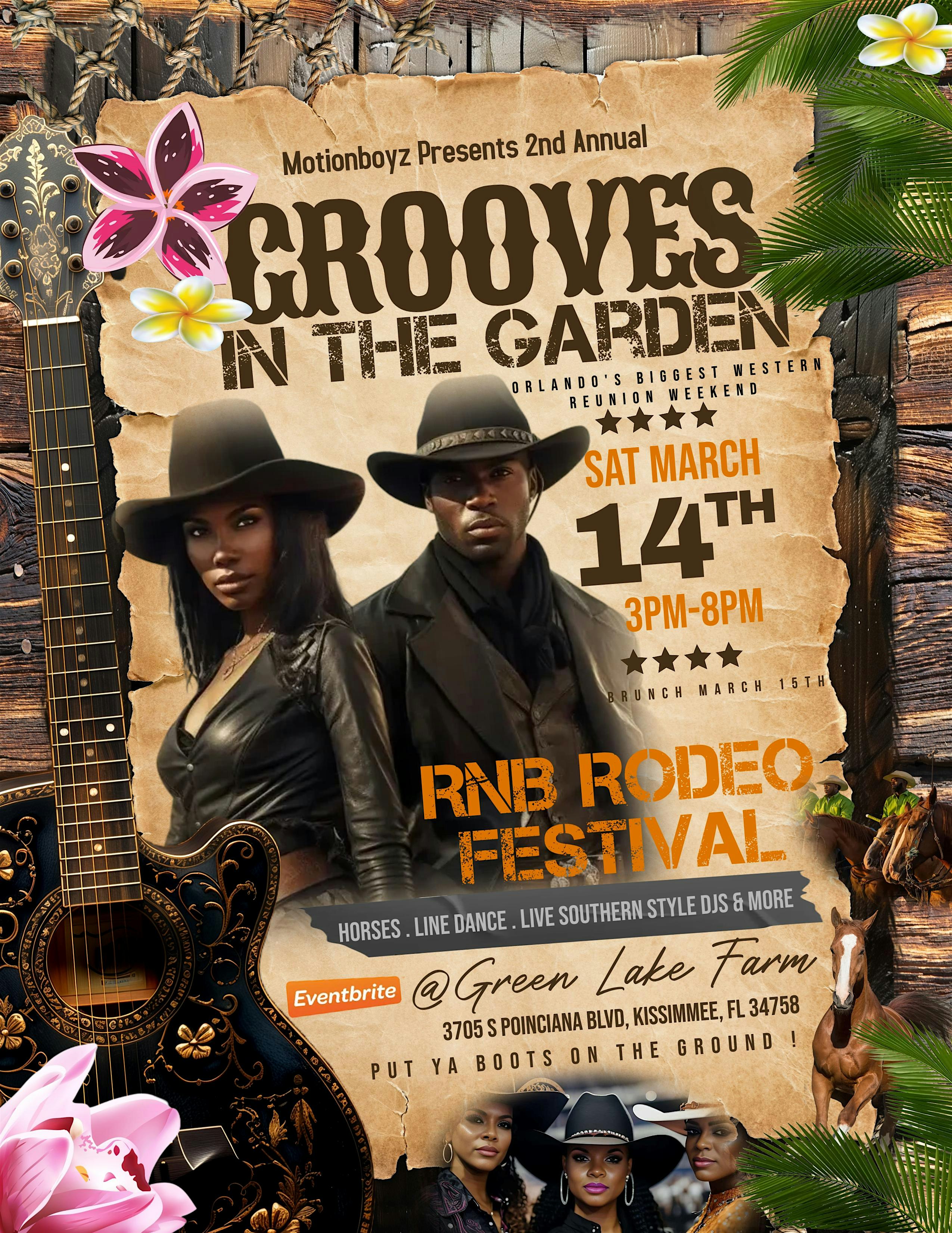 by admin13Feb Grooves In the Garden RnB Rodeo Weekend 2026 at Green Lakes Farm – Kissimmee, FL Grooves In the Garden RnB Rodeo Weekend 2026 at Green Lakes Farm – Kissimmee, FL 2 2 people viewed this event. Orlando the time has come for the 2nd Annual RNB Rodeo . A day in the rustic gardens with family and friends is a reunion like never before. Tickets-RSVP Link Date And Time Saturday, March 14th, 2026 07:00 PM (PST) Venue Green Lakes Farm Location 3705 South Poinciana Boulevard, Kissimmee, FL 34758 Event Types Festival or FairMusic Event Category FloridaOrlando Share With Friends Facebook Twitter Linkedin Xing Pinterest Share This Post: