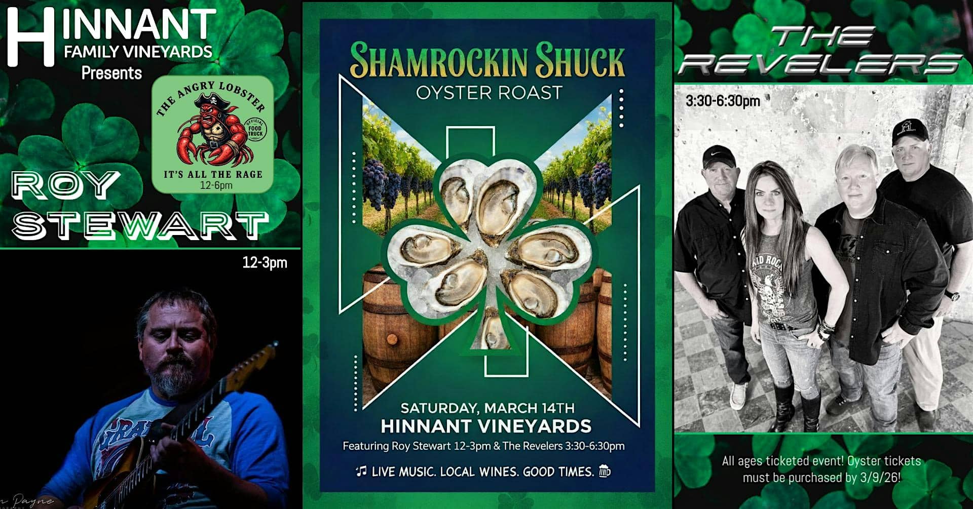 by admin14Feb HFV 2026 Shamrockin’ Shuck Oyster Roast at Hinnant Farms Vineyard & Winery – Pine Level, NC HFV 2026 Shamrockin’ Shuck Oyster Roast at Hinnant Farms Vineyard & Winery – Pine Level, NC 2 2 people viewed this event. Come join us at Hinnant Vineyards for a day full of live music, great food, award winning wines and other fun beverages & fresh NC Oysters! Tickets-RSVP Link Date And Time Saturday, March 14th, 2026 04:00 PM (PST) Venue Hinnant Farms Vineyard & Winery Location 826 Pine Level Micro Road, Pine Level, NC 27568 Event Types Food & DrinkParty or Social Gathering Event Category North Carolina Share With Friends Facebook Twitter Linkedin Xing Pinterest Share This Post: