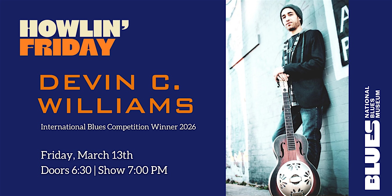 by admin13Feb Howlin’ Friday: Devin C. Williams at National Blues Museum – St. Louis, MO Howlin’ Friday: Devin C. Williams at National Blues Museum – St. Louis, MO 2 2 people viewed this event. Join us for an electrifying night of music with Devin C. Williams that will have you howlin’ for more! Tickets-RSVP Link Date And Time Saturday, March 14th, 2026 12:00 AM (PST) Venue National Blues Museum Location 615 Washington Avenue, St. Louis, MO 63101 Event Types Concert or PerformanceMusic Event Category MissouriSt. Louis Share With Friends Facebook Twitter Linkedin Xing Pinterest Share This Post: