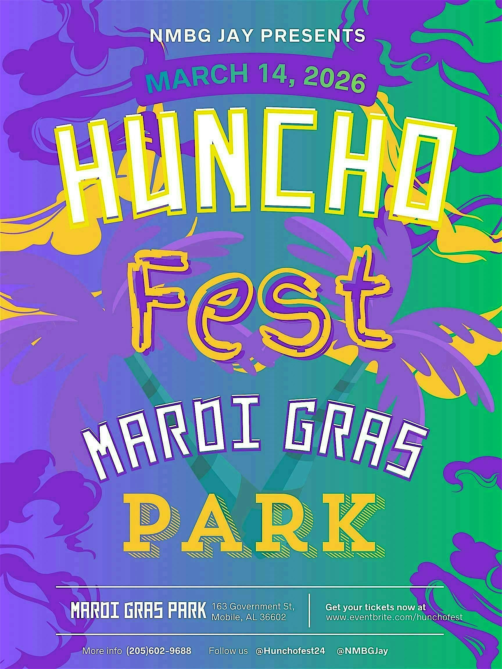 by admin13Feb Huncho Fest (Mardi Gras Park) at Mardi Gras Park – Mobile, AL Huncho Fest (Mardi Gras Park) at Mardi Gras Park – Mobile, AL 2 2 people viewed this event. Huncho Fest is where the city’s hottest independent artists collide with raw energy, booming sound, and festival-level vibes. Tickets-RSVP Link Date And Time Saturday, March 14th, 2026 08:00 PM (PST) Venue Mardi Gras Park Location 104-148 South Royal Street, Mobile, AL 36602 Event Types Concert or PerformanceMusic Event Category AlabamaMobile Share With Friends Facebook Twitter Linkedin Xing Pinterest Share This Post:
