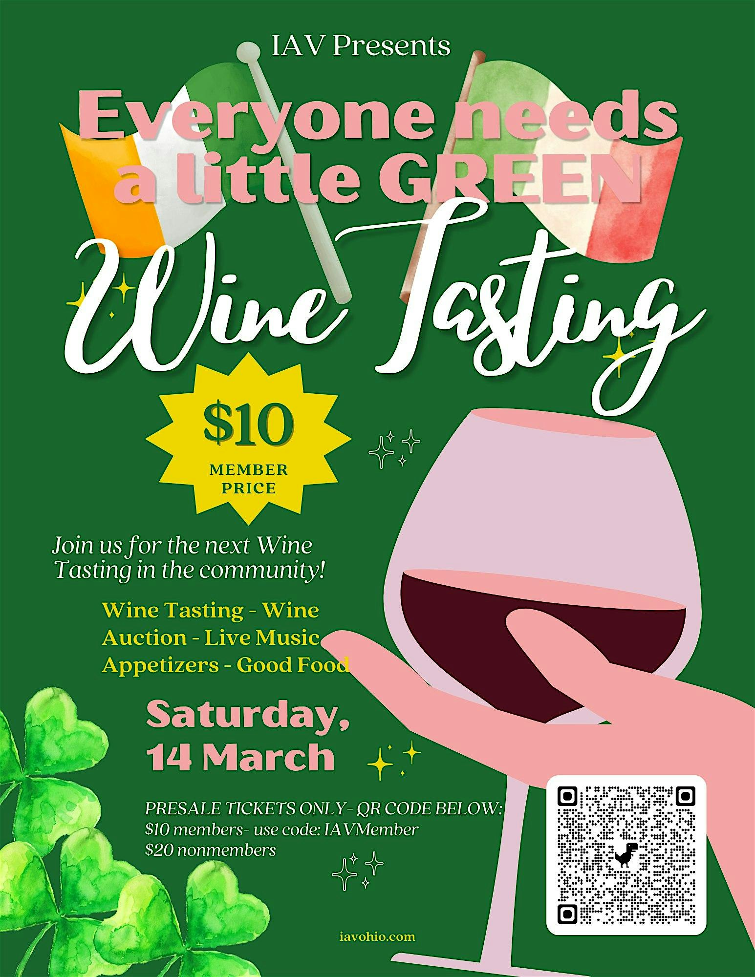 by admin24Feb IAV March Wine Tasting (Destination TBD)- Everyone Needs A Little GREEN at Italian American Veterans – Lorain, OH IAV March Wine Tasting (Destination TBD)- Everyone Needs A Little GREEN at Italian American Veterans – Lorain, OH 2 2 people viewed this event. Celebrate March w/ us out in the community! We’re blending cultures, wine, and fun—don’t miss this special night dedicated to you! Tickets-RSVP Link Date And Time Saturday, March 14th, 2026 06:00 PM (PST) Venue Italian American Veterans Location 4567 Oberlin Avenue, Lorain, OH 44053 Event Types Food & Drink Event Category Ohio Share With Friends Facebook Twitter Linkedin Xing Pinterest Share This Post: