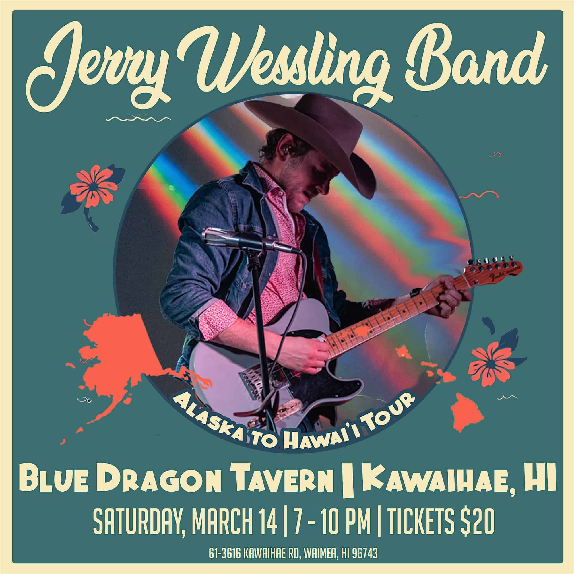 by admin23Feb JERRY WESSLING BAND LIVE AT THE BLUE DRAGON KAWAIHAE HI at Blue Dragon Tavern & Cosmic Musiquarium – Waimea, HI JERRY WESSLING BAND LIVE AT THE BLUE DRAGON KAWAIHAE HI at Blue Dragon Tavern & Cosmic Musiquarium – Waimea, HI 1 1 people viewed this event. Catch the Jerry Wessling Band live at The Blue Dragon in Kawaihae for a night full of awesome vibes! Tickets-RSVP Link Date And Time Saturday, March 14th, 2026 07:00 PM (PST) Venue Blue Dragon Tavern & Cosmic Musiquarium Location 61-3616 Kawaihae Road, Waimea, HI 96743 Event Types Concert or PerformanceMusic Event Category Hawaii Share With Friends Facebook Twitter Linkedin Xing Pinterest Share This Post: