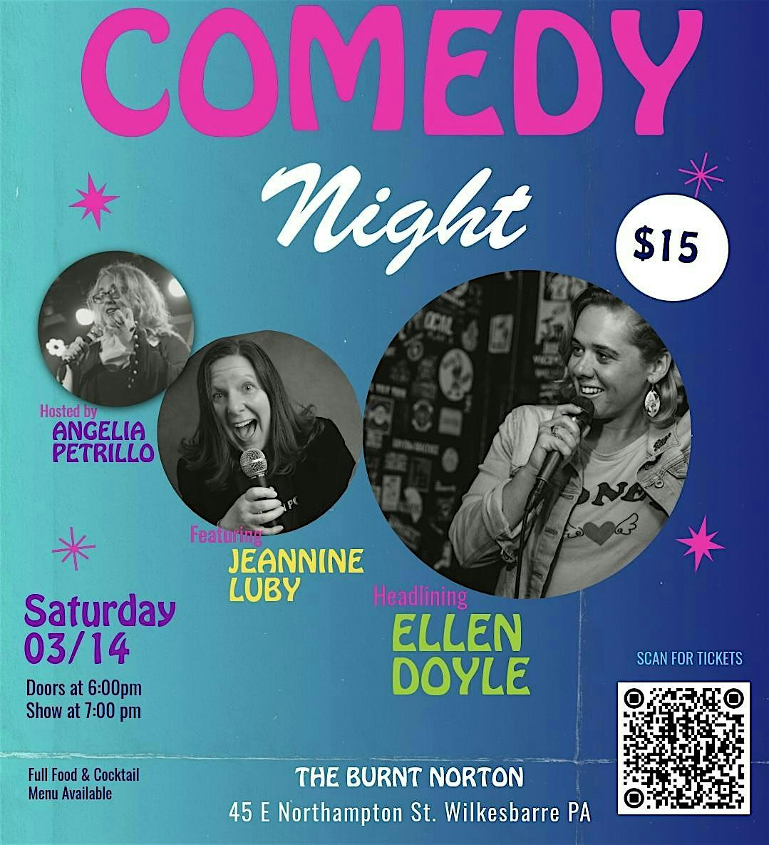 by admin05Mar Ladies Comedy Night at The Burnt Norton – Wilkes-Barre, PA Ladies Comedy Night at The Burnt Norton – Wilkes-Barre, PA 2 2 people viewed this event. Craft cocktails, a unique menu, and female-powered comedy! Tickets-RSVP Link Date And Time Saturday, March 14th, 2026 07:00 PM (PST) Venue The Burnt Norton Location 45 East Northampton Street, Wilkes-Barre, PA 18701 Event Types Concert or PerformancePerforming & Visual Arts Event Category Pennsylvania Share With Friends Facebook Twitter Linkedin Xing Pinterest Share This Post: