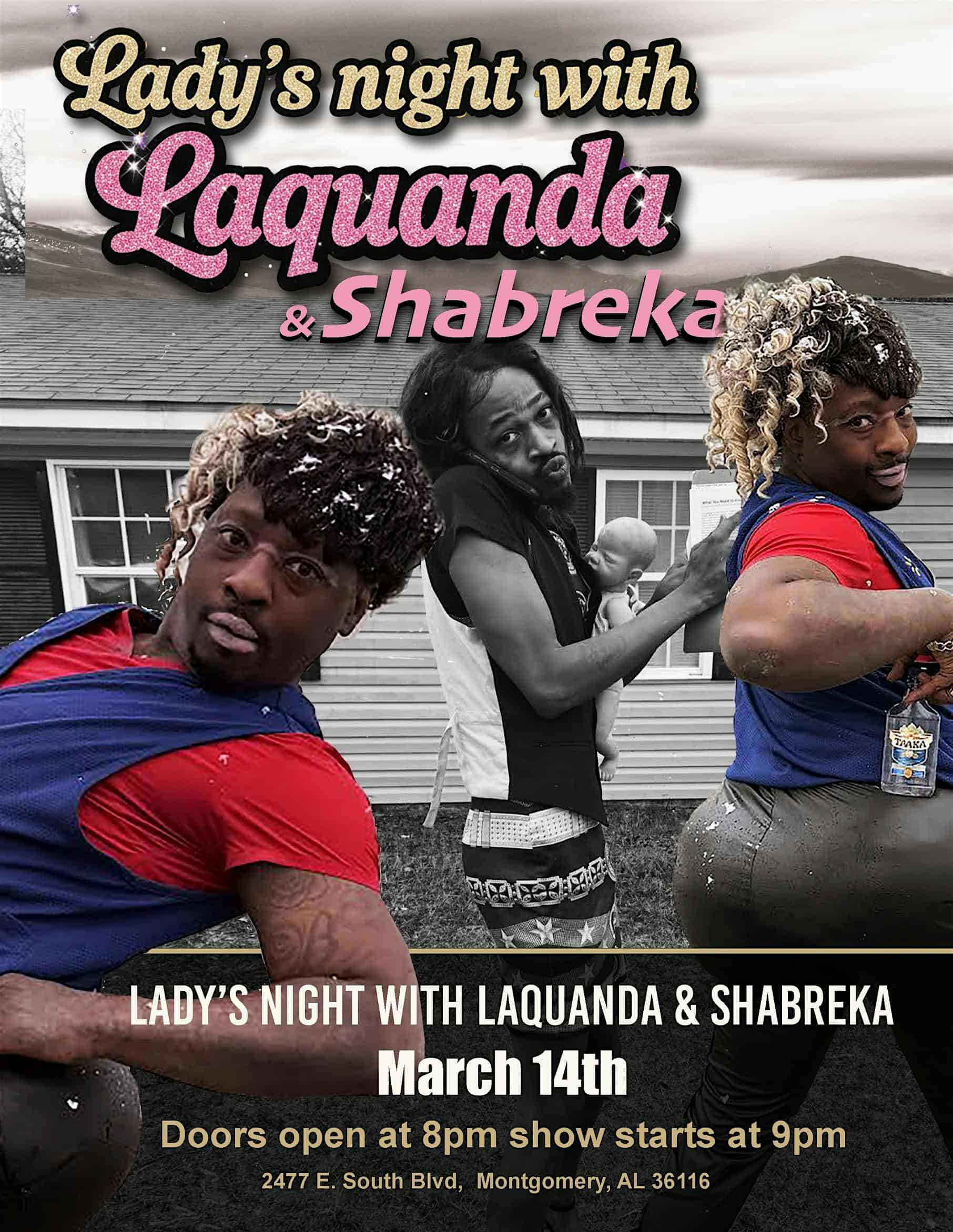 by admin23Feb Ladies Night With LaQuanda and Shabreka at 2477 E South Blvd – Montgomery, AL Ladies Night With LaQuanda and Shabreka at 2477 E South Blvd – Montgomery, AL 1 1 people viewed this event. Grab your girls and chill with LaQuanda and Shabreka for a fun, fab night out! Tickets-RSVP Link Date And Time Saturday, March 14th, 2026 08:00 PM (PST) Venue 2477 E South Blvd Location 2477 East South Boulevard, Montgomery, AL 36116 Event Types Community & CultureParty or Social Gathering Event Category Alabama Share With Friends Facebook Twitter Linkedin Xing Pinterest Share This Post: