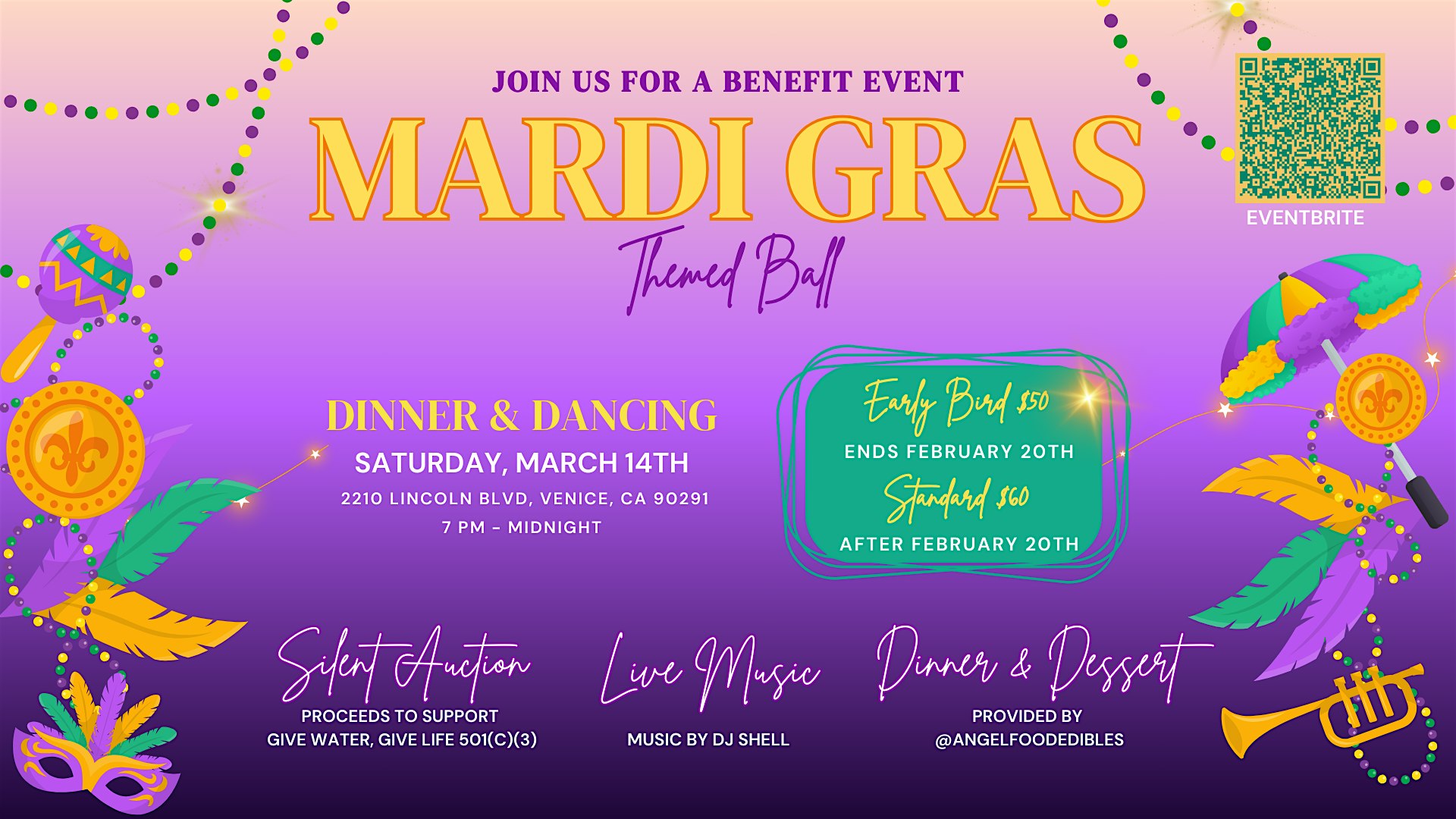 by admin27Feb Mardi Gras Themed Ball at 2210 Lincoln Blvd – Los Angeles, CA Mardi Gras Themed Ball at 2210 Lincoln Blvd – Los Angeles, CA 1 1 people viewed this event. Get ready to dance, eat, and celebrate the Mardi Gras way! Tickets-RSVP Link Date And Time Saturday, March 14th, 2026 07:00 PM (PST) Venue 2210 Lincoln Blvd Location 2210 Lincoln Boulevard, Los Angeles, CA 90291 Event Types Party or Social GatheringSeasonal & Holiday Event Category CaliforniaLos Angeles Share With Friends Facebook Twitter Linkedin Xing Pinterest Share This Post: