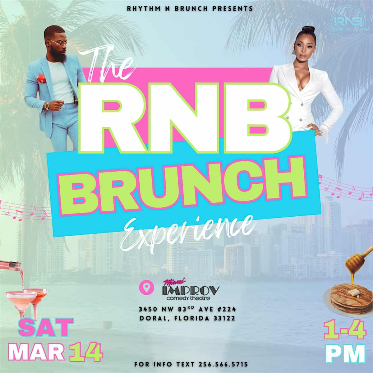 by admin24Feb Miami – RNB Brunch Experience at Miami Improv Comedy Club and Dinner Theater – Doral, FL Miami – RNB Brunch Experience at Miami Improv Comedy Club and Dinner Theater – Doral, FL 2 2 people viewed this event. Rated 10 out of 10, and highly recommended by fans and guest. Satisfaction Guaranteed! Tickets-RSVP Link Date And Time Saturday, March 14th, 2026 01:00 PM (PST) Venue Miami Improv Comedy Club and Dinner Theater Location 3450 Northwest 83rd Avenue, Doral, FL 33122 Event Types Food & DrinkParty or Social Gathering Event Category FloridaMiami Share With Friends Facebook Twitter Linkedin Xing Pinterest Share This Post: