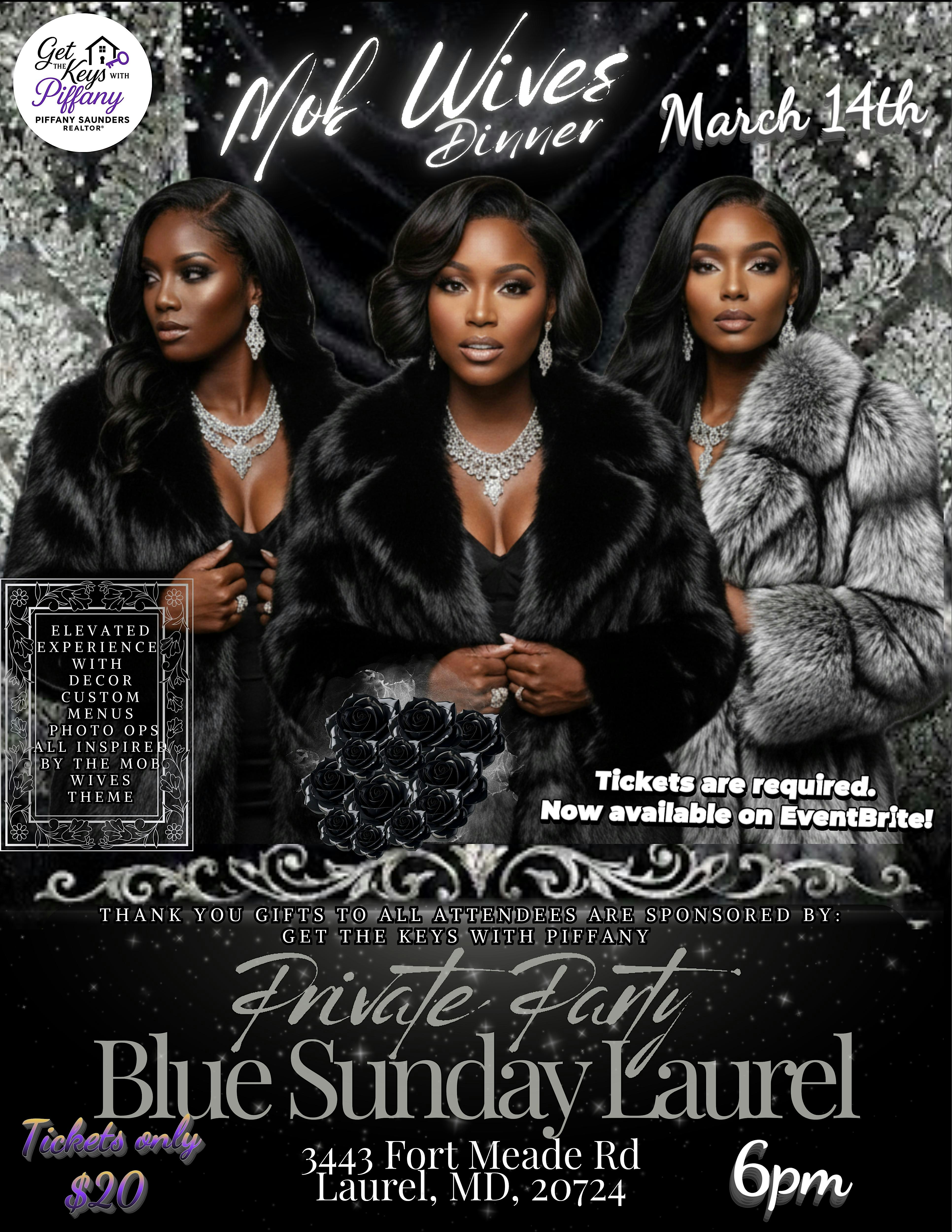 by admin13Feb Mob Wives Dinner at Blue Sunday Bar & Grill – Laurel, MD Mob Wives Dinner at Blue Sunday Bar & Grill – Laurel, MD 2 2 people viewed this event. Inspired by the iconic TV series Mob Wives , this is a LADIES ONLY dinner where we are getting dressed up in our best Mob wives inspired fit Tickets-RSVP Link Date And Time Saturday, March 14th, 2026 11:00 PM (PST) Venue Blue Sunday Bar & Grill Location 3443 Fort Meade Road, Laurel, MD 20724 Event Types Community & CultureParty or Social Gathering Event Category Maryland Share With Friends Facebook Twitter Linkedin Xing Pinterest Share This Post: