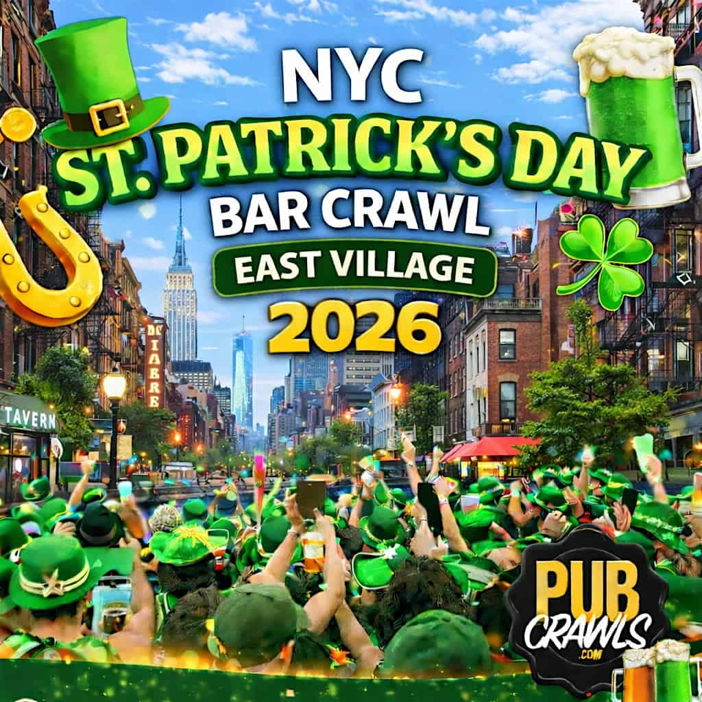 by admin14Feb NYC St. Patrick’s Day Weekend Bar Crawl 2026 at Coyote Ugly New York – New York, NY NYC St. Patrick’s Day Weekend Bar Crawl 2026 at Coyote Ugly New York – New York, NY 2 2 people viewed this event. Join the NYC St. Patrick’s Day Weekend Bar Crawl 2026! Bar hop through the best bars in NYC with all of your friends for St. Paddy’s! Tickets-RSVP Link Date And Time Saturday, March 14th, 2026 05:00 PM (PST) Venue Coyote Ugly New York Location 233 East 14th Street, New York, NY 10003 Event Types Party or Social GatheringSeasonal & Holiday Event Category New YorkNew York City Share With Friends Facebook Twitter Linkedin Xing Pinterest Share This Post: