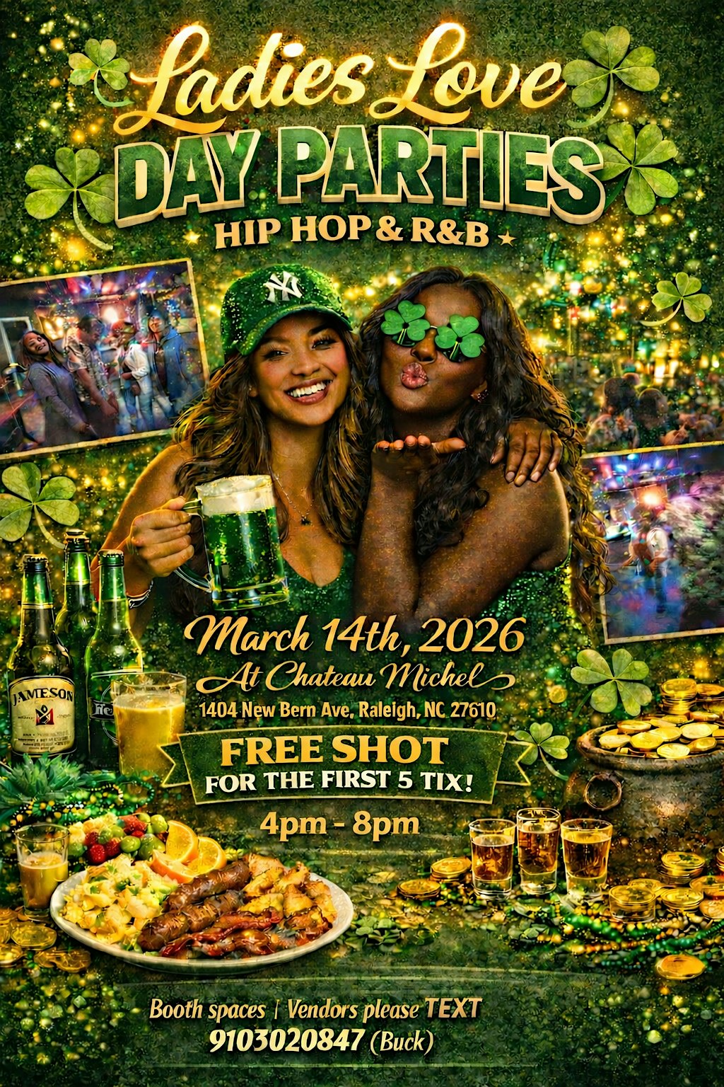 by admin24Feb Pretty girls love day parties “St Patrick’s Day edition” at 1404 New Bern Ave – Raleigh, NC Pretty girls love day parties “St Patrick’s Day edition” at 1404 New Bern Ave – Raleigh, NC 3 3 people viewed this event. Ladies Love Day Parties is where day vibes meet lit energy — bringing together EVERYBODY for good music, brunch bites, Drinks and vibes Tickets-RSVP Link Date And Time Saturday, March 14th, 2026 04:00 PM (PST) Venue 1404 New Bern Ave Location 1404 New Bern Avenue, Raleigh, NC 27610 Event Types Party or Social GatheringSeasonal & Holiday Event Category North CarolinaRaleigh Share With Friends Facebook Twitter Linkedin Xing Pinterest Share This Post: