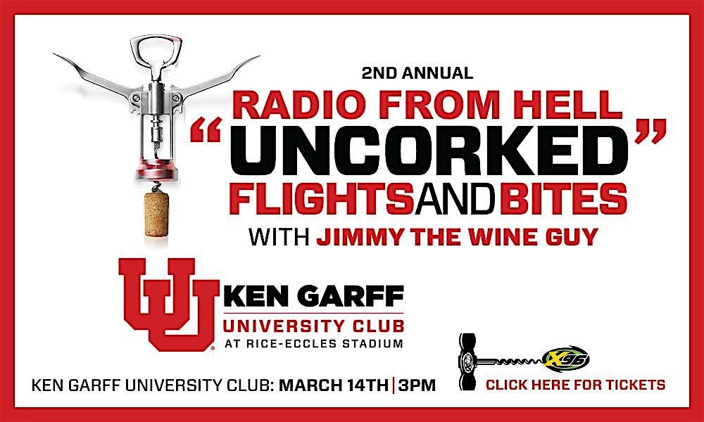 by admin27Feb Radio From Hell Uncorked with Jimmy The Wine Guy at Rice-Eccles Stadium – Salt Lake City, UT Radio From Hell Uncorked with Jimmy The Wine Guy at Rice-Eccles Stadium – Salt Lake City, UT 1 1 people viewed this event. Join Radio From Hell with Jimmy The Wine Guy at the Ken Garff University Club at Rice-Eccles Stadium March 14th at 3pm for a special event! Tickets-RSVP Link Date And Time Saturday, March 14th, 2026 03:00 PM (PST) Venue Rice-Eccles Stadium Location 451 1400 East, Salt Lake City, UT 84112 Event Types Food & Drink Event Category Salt Lake CityUtah Share With Friends Facebook Twitter Linkedin Xing Pinterest Share This Post: