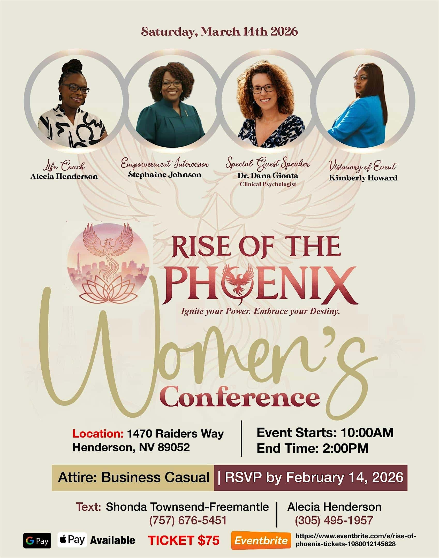 by admin14Feb RISE OF PHOENIX at 1470 Raiders Way – Henderson, NV RISE OF PHOENIX at 1470 Raiders Way – Henderson, NV 2 2 people viewed this event. Get ready to soar and ignite your spirit at the epic Rise of Phoenix in-person event! Tickets-RSVP Link Date And Time Saturday, March 14th, 2026 05:00 PM (PST) Venue 1470 Raiders Way Location 1470 Raiders Way, Henderson, NV 89052 Event Types Concert or PerformancePerforming & Visual Arts Event Category Nevada Share With Friends Facebook Twitter Linkedin Xing Pinterest Share This Post: