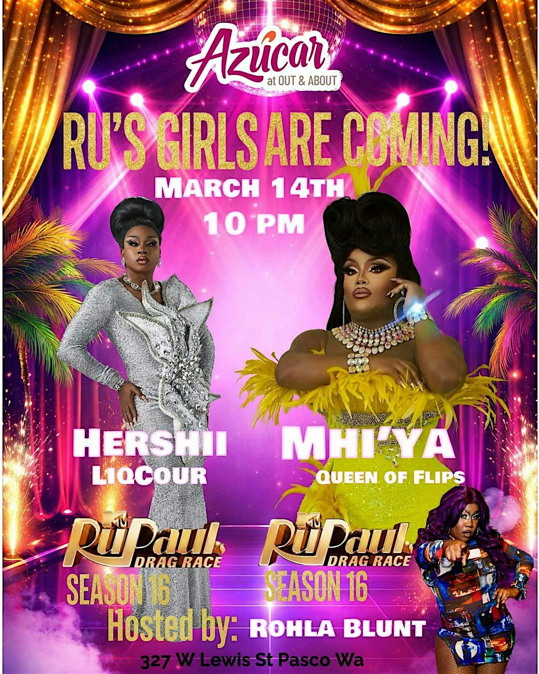 by admin05Mar Rupaul Queens Take Azúcar at Azucar at Out And About – Pasco, WA Rupaul Queens Take Azúcar at Azucar at Out And About – Pasco, WA 1 1 people viewed this event. Get ready to sashay and slay with the fiercest queens at Rupaul Queens Take Azúcar, where the spotlight shines on glamour and talent! Tickets-RSVP Link Date And Time Saturday, March 14th, 2026 09:00 PM (PST) Venue Azucar at Out And About Location 327 West Lewis Street, Pasco, WA 99301 Event Types Concert or PerformancePerforming & Visual Arts Event Category Washington Share With Friends Facebook Twitter Linkedin Xing Pinterest Share This Post:
