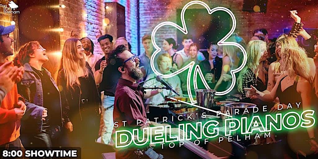 by admin23Feb Saint Patrick’s Parade Day Dueling Pianos Show at Top of Pelham – Newport, RI Saint Patrick’s Parade Day Dueling Pianos Show at Top of Pelham – Newport, RI 1 1 people viewed this event. Join us at the Top of Pelham for Newport’s only Dueling Pianos event, featuring great entertainment and beautiful views of the harbor! Tickets-RSVP Link Date And Time Saturday, March 14th, 2026 08:00 PM (PST) Venue Top of Pelham Location 1 Pelham St, Newport, RI 2840 Event Types Concert or PerformanceMusic Event Category Rhode Island Share With Friends Facebook Twitter Linkedin Xing Pinterest Share This Post: