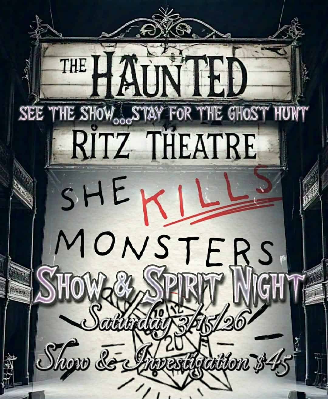 SHE KILLS MONSTERS SHOW & SPIRITS NIGHT AT THE HAUNTED RITZ THEATRE at The Haunted Ritz Theatre – Haddon Township, NJ