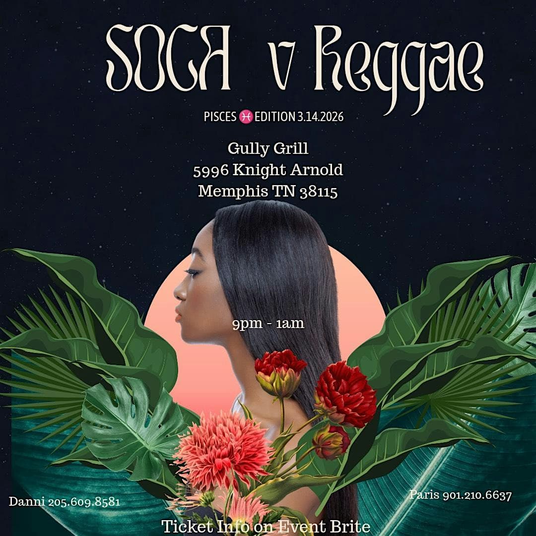 by admin23Feb Soca V Reggae at Gullys Jamaican Restaurant – Memphis, TN Soca V Reggae at Gullys Jamaican Restaurant – Memphis, TN 1 1 people viewed this event. Get ready to vibe live with the hottest Soca and Reggae beats at Soca V Reggae! Tickets-RSVP Link Date And Time Saturday, March 14th, 2026 09:00 PM (PST) Venue Gullys Jamaican Restaurant Location 5996 Knight Arnold Road, Memphis, TN 38115 Event Types Concert or PerformanceMusic Event Category MemphisTennessee Share With Friends Facebook Twitter Linkedin Xing Pinterest Share This Post: